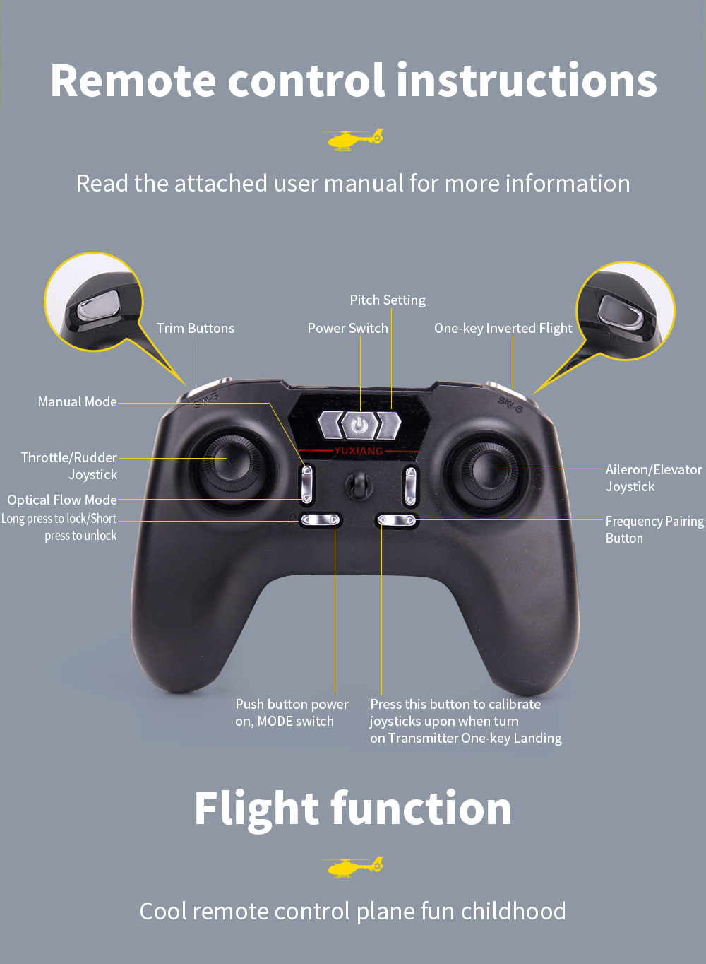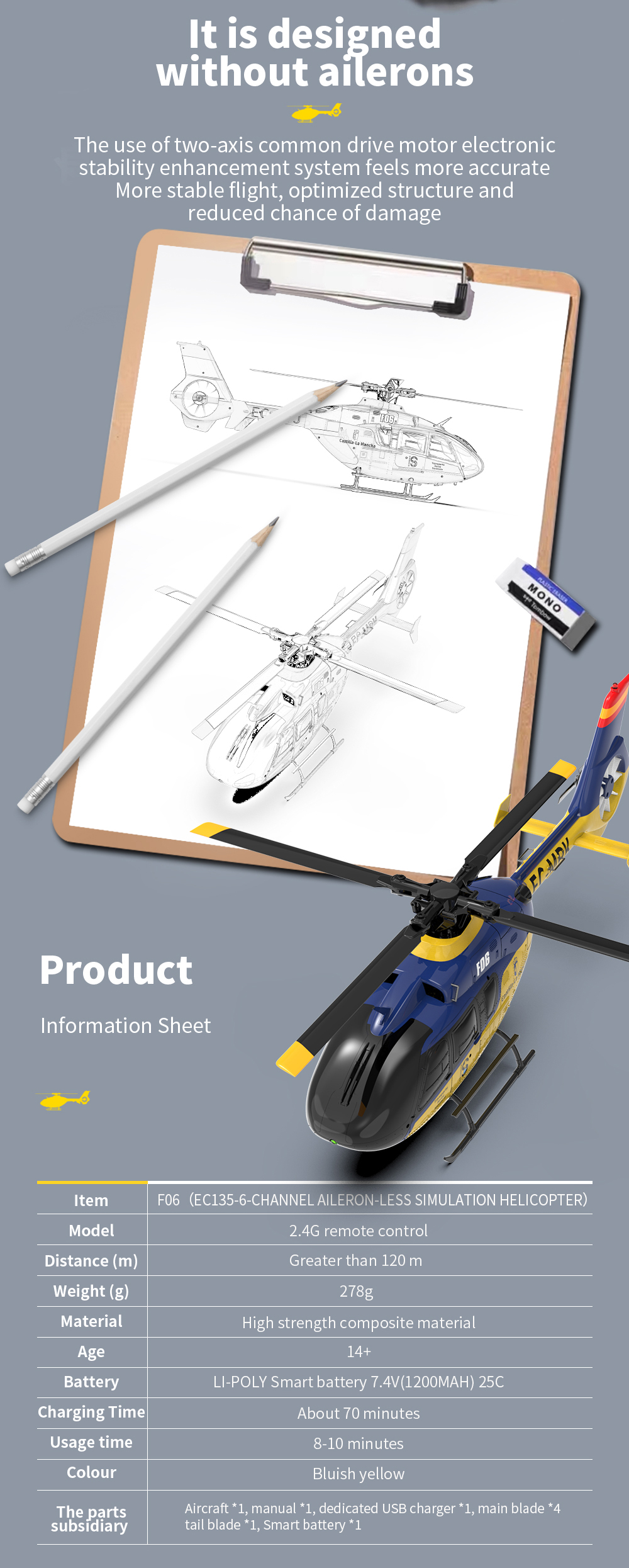 2. Adopting aileron free design, dual axis co drive motor, electronic stabilization system, more precise tactile feel, more stable flight, optimized structure to reduce the probability of damage.