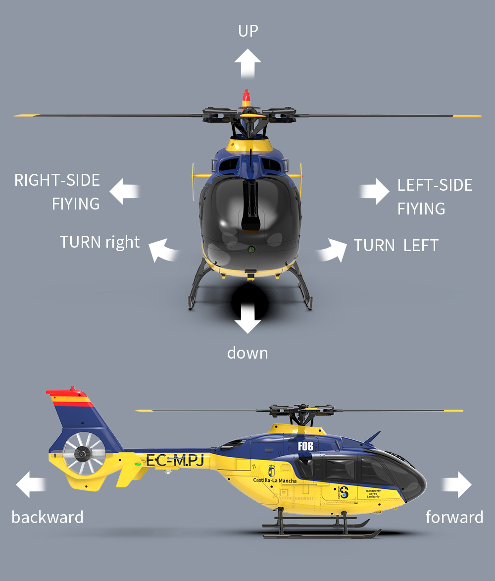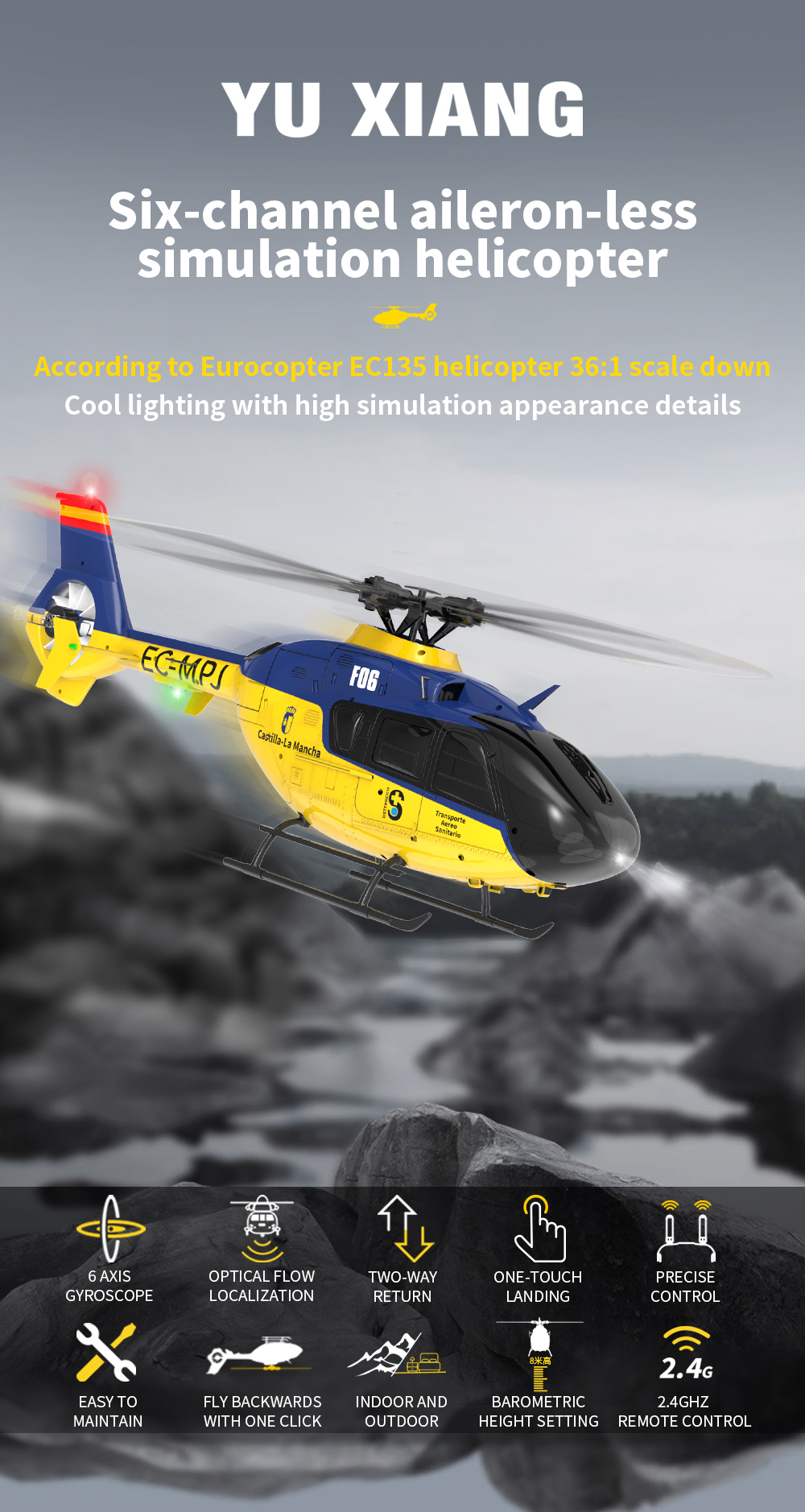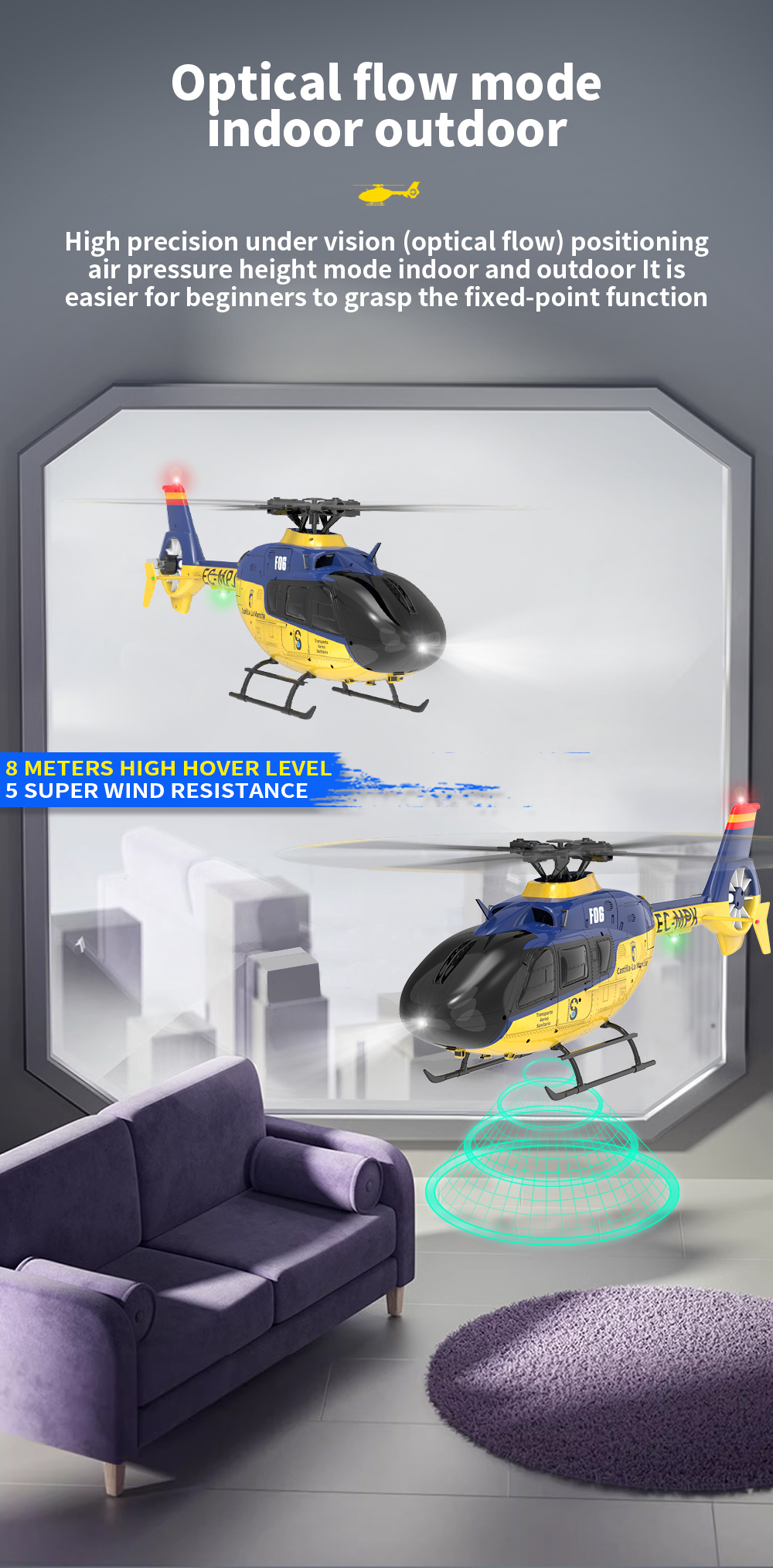 1. According to the 36:1 scale reduction of the Eurodirect EC135 helicopter, it has high simulation appearance details and cool lighting.