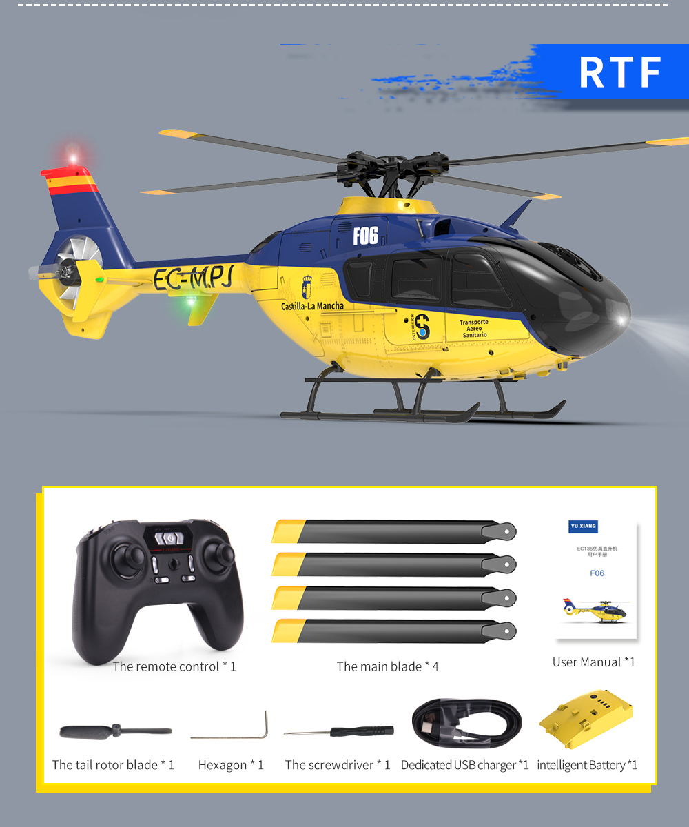 YXZNRC RC Helicopter F06 EC135 2.4G 6CH 6 Axis Gyro RTF Direct Drive Dual Brushless Motor One Key 3D Roll Flybarless 1:36 Remote Control Aircraft Arobatic Drone Toys