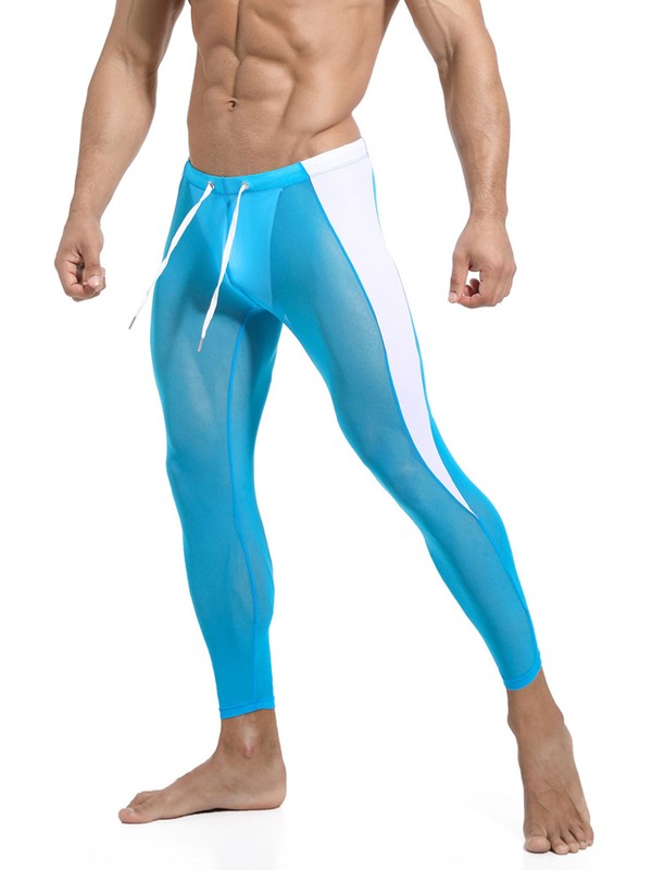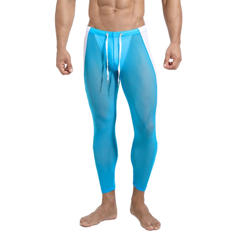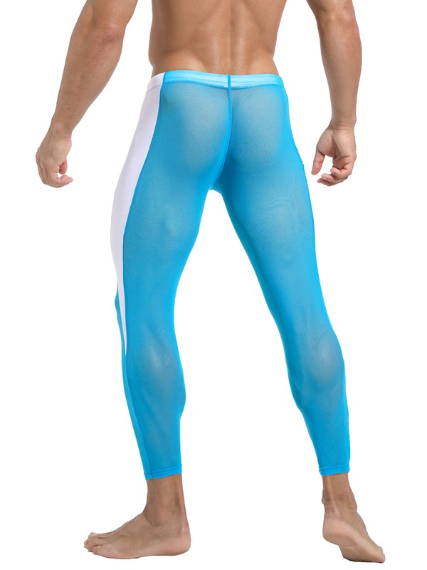 A mesh leggings for men, 4-way stretch fabric allows mobility in any direction and stretch technology provides a body hugging fit.