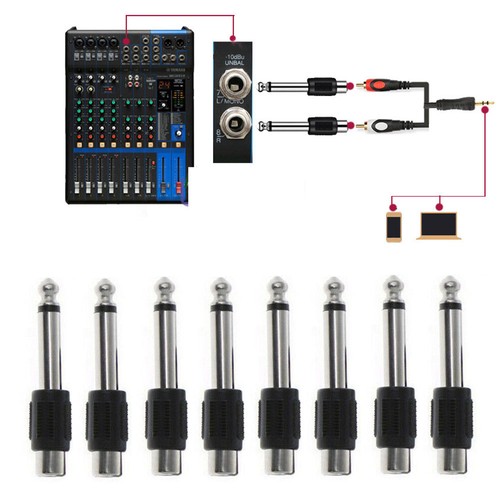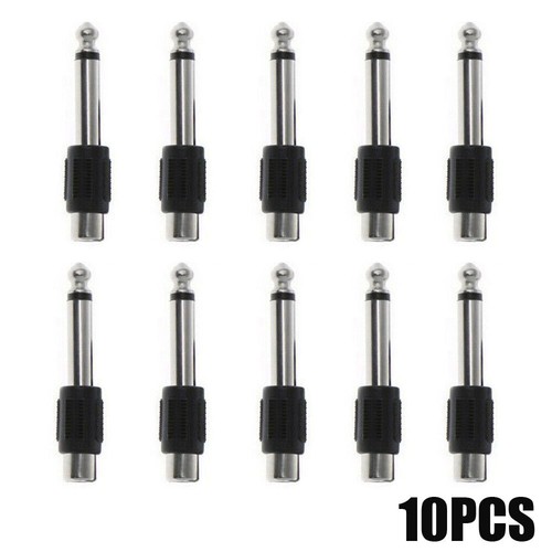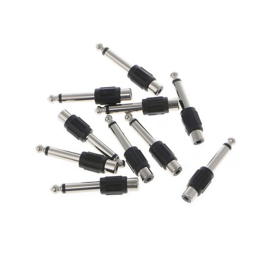 Specifications: -- 10pc RCA Jack to 1/4" Mono Plug -- RCA Female -- 1/4" Mono Male -- Black Molded Plastic Construction -- Nickel-Plated Contacts -- Color: Silver+Black -- Length: 53mm Features: 100% Brand new and high quality Durable, compact, and lightweight Low signal loss, high transfer speed Applicable to connection of audio device Used for adapting a female RCA plug to 6.35mm (1/4') mono male jack Great for speaker use for mono channel microphone connecting Widely used in home, KTV, or other places where use the audio devices Package includes: 10pcs RCA Female Jack To Male Mono Plug Connector