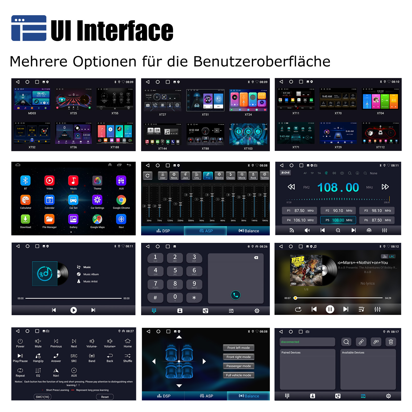RDS/FM-Radio und Bluetooth und ASP Sound: Unterstützt Bluetooth 4.1, mit integriertem Mikrofon, damit Sie während der Fahrt freihändig telefonieren können. Unterstützt den Zugriff auf das Telefonbuch, die Musikwiedergabeschnittstelle usw. RDS unterstützt. Sie können 18 FM Radiosender speichern. Eingebauter ASP-Chip. Unterstützt 32-Band-EQ-Einstellung, die nach Ihren persönlichen Vorlieben eingestellt werden kann.Der Ihrem Originalsound sehr ähnlich ist.4 x 45W Verstärker, Surround-Sound und Subwoofer-Ausgang.