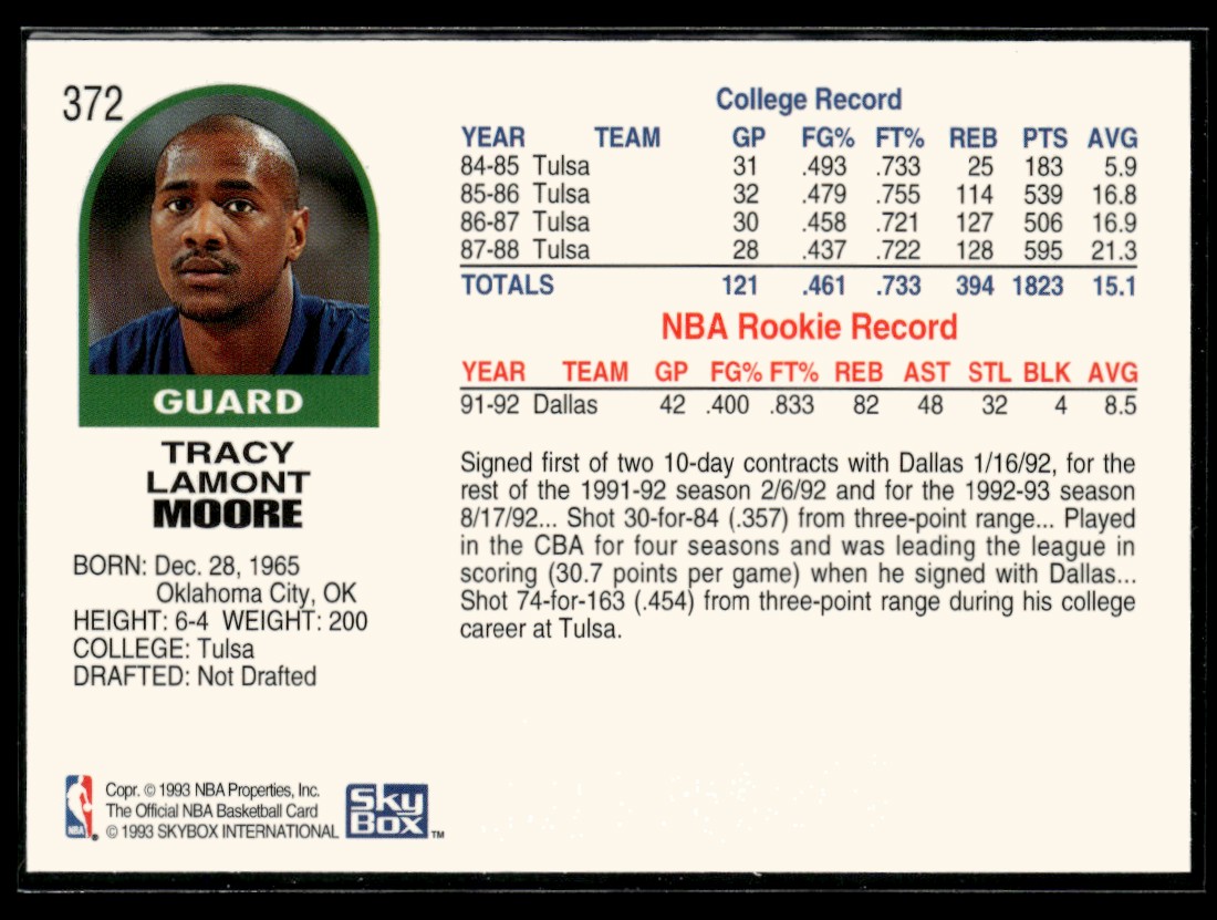 | 1992-93 Hoops Tracy Moore RC Dallas Mavericks #372 | ||||||||||||||||||