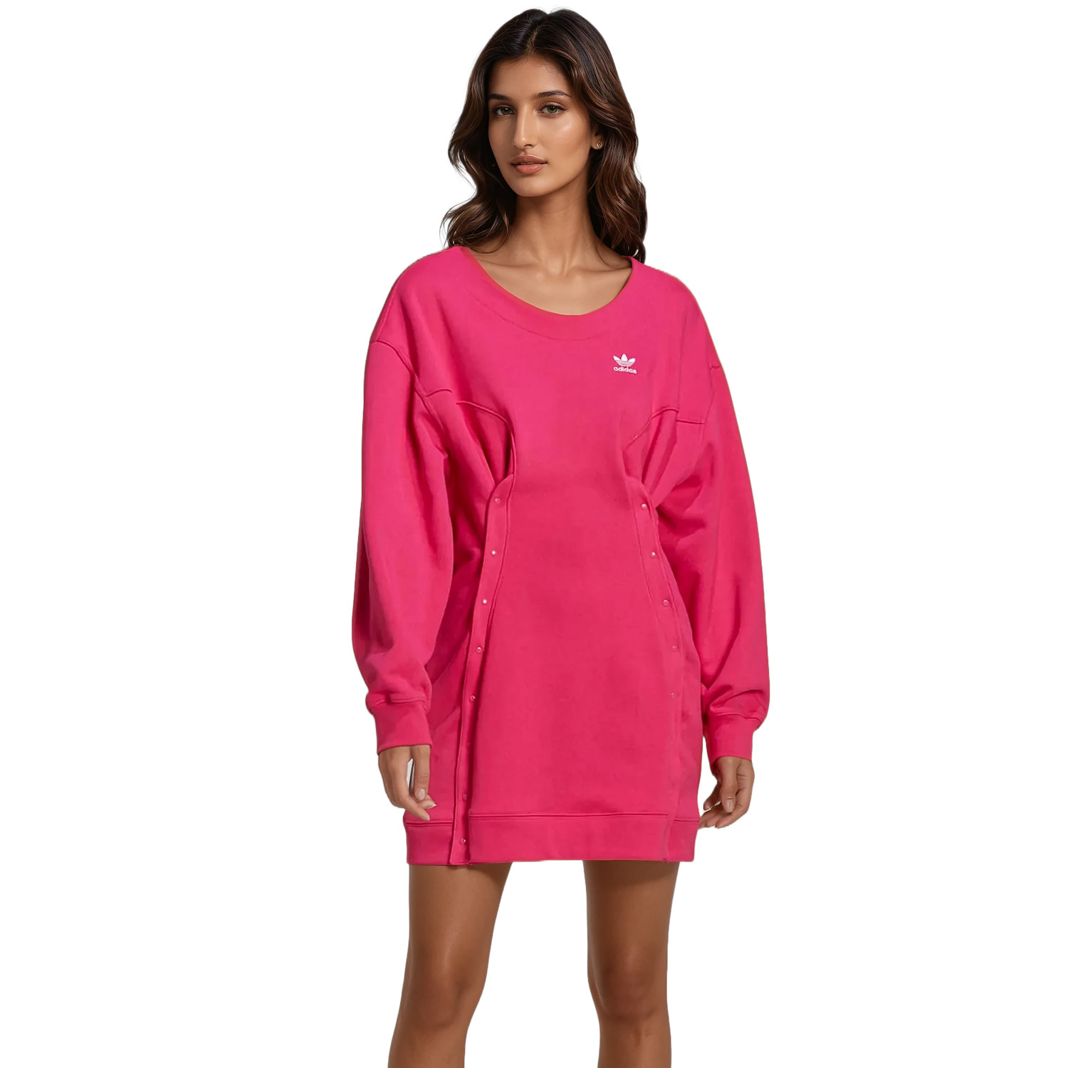 adidas Damen Originals Sweater Dress wandelbar durch Druckknöpfe real magenta