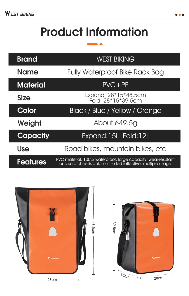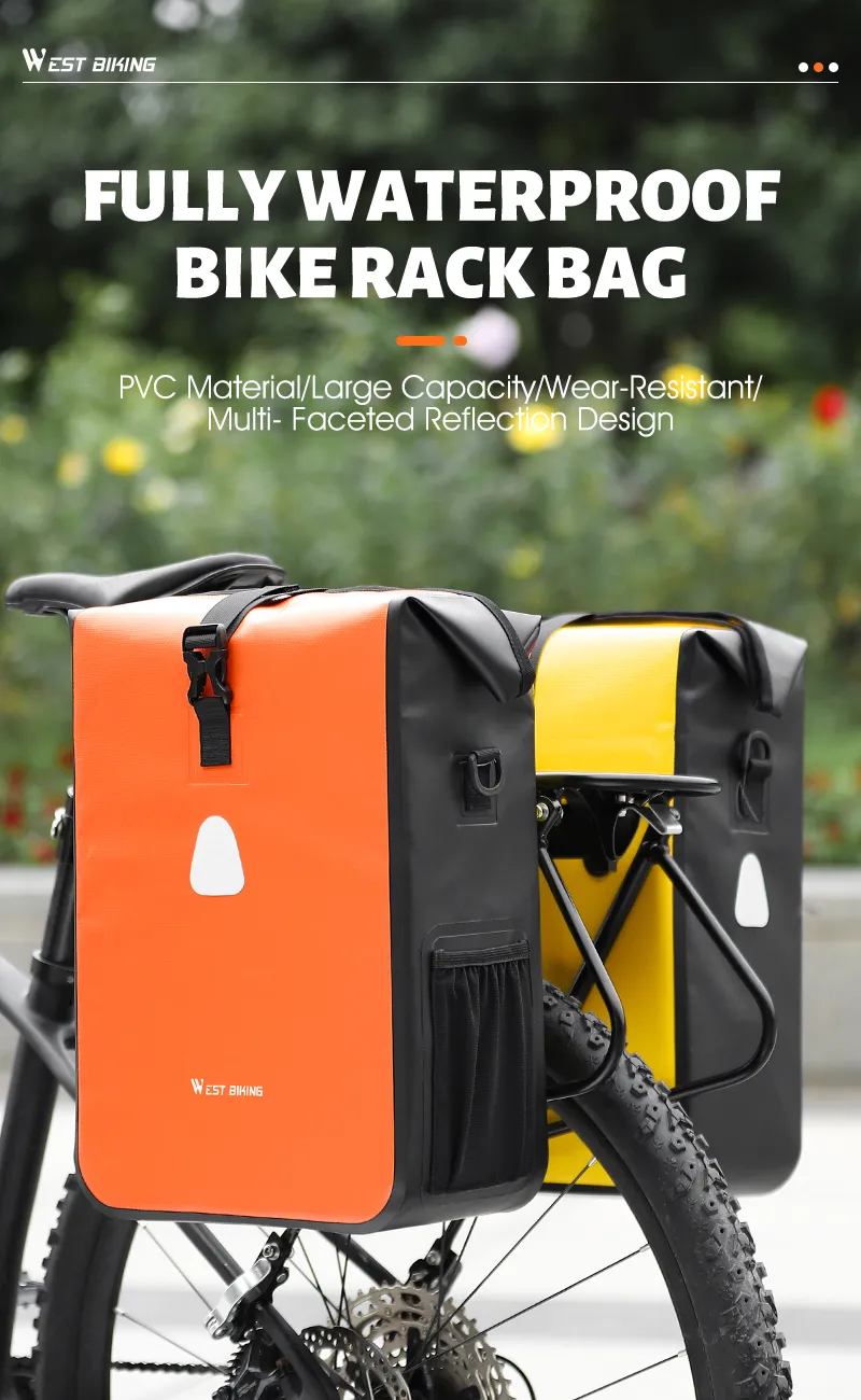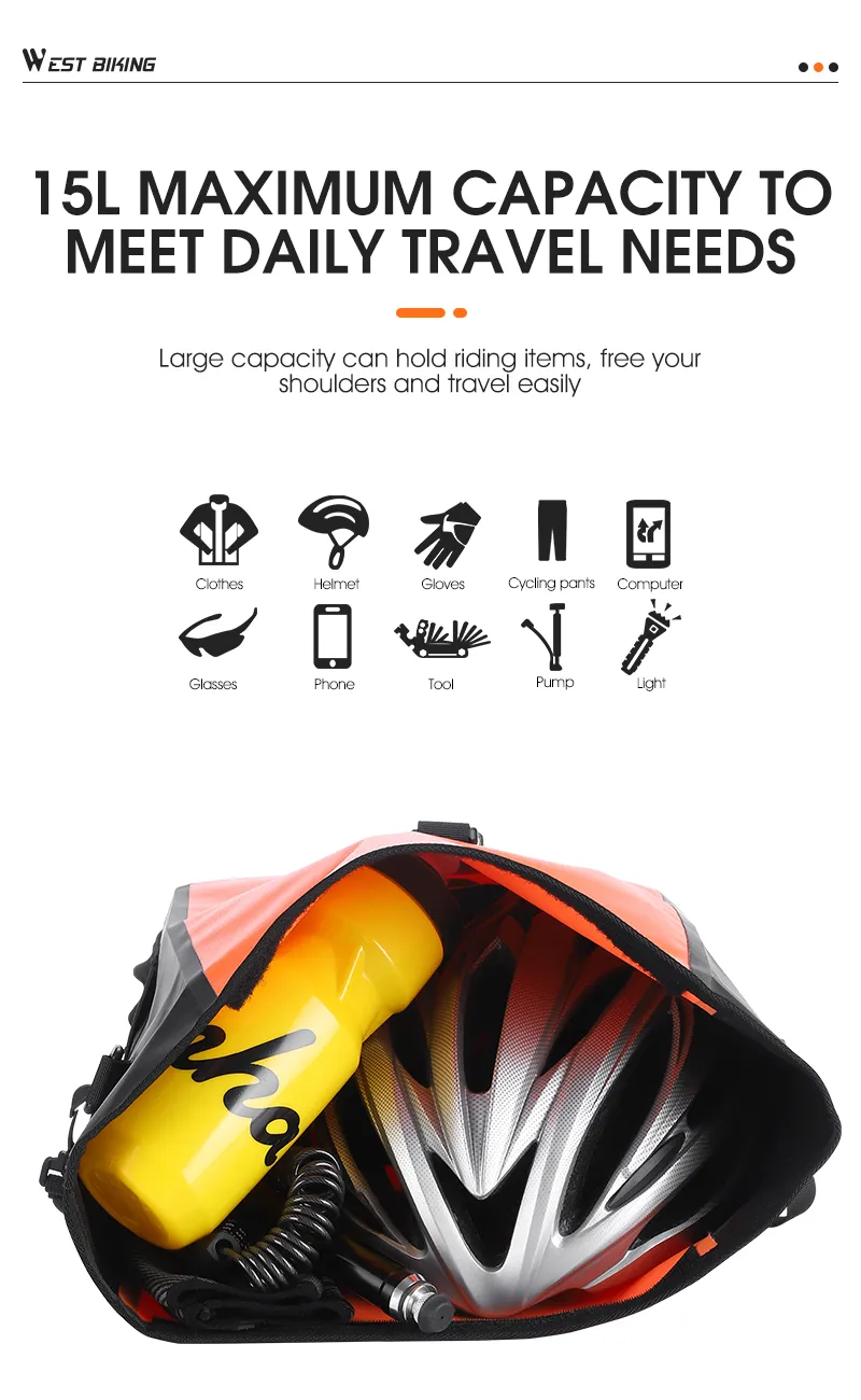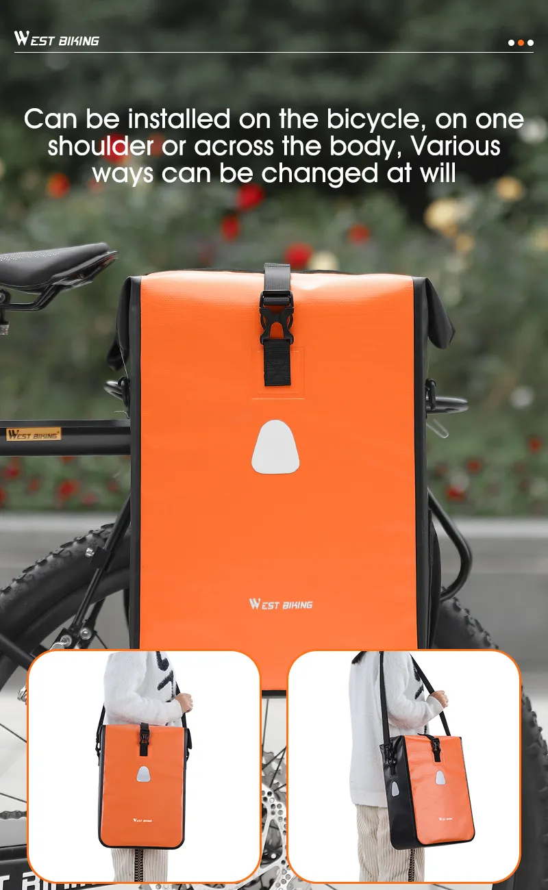 WEST BIKING 12-15L Bike Bag Fully Waterproof Bicycle Rear Rack Seat Pannier Bag MTB Road Bike Side Rear Luggage Carrier Bag Shoulder Bag Cycling Accessories