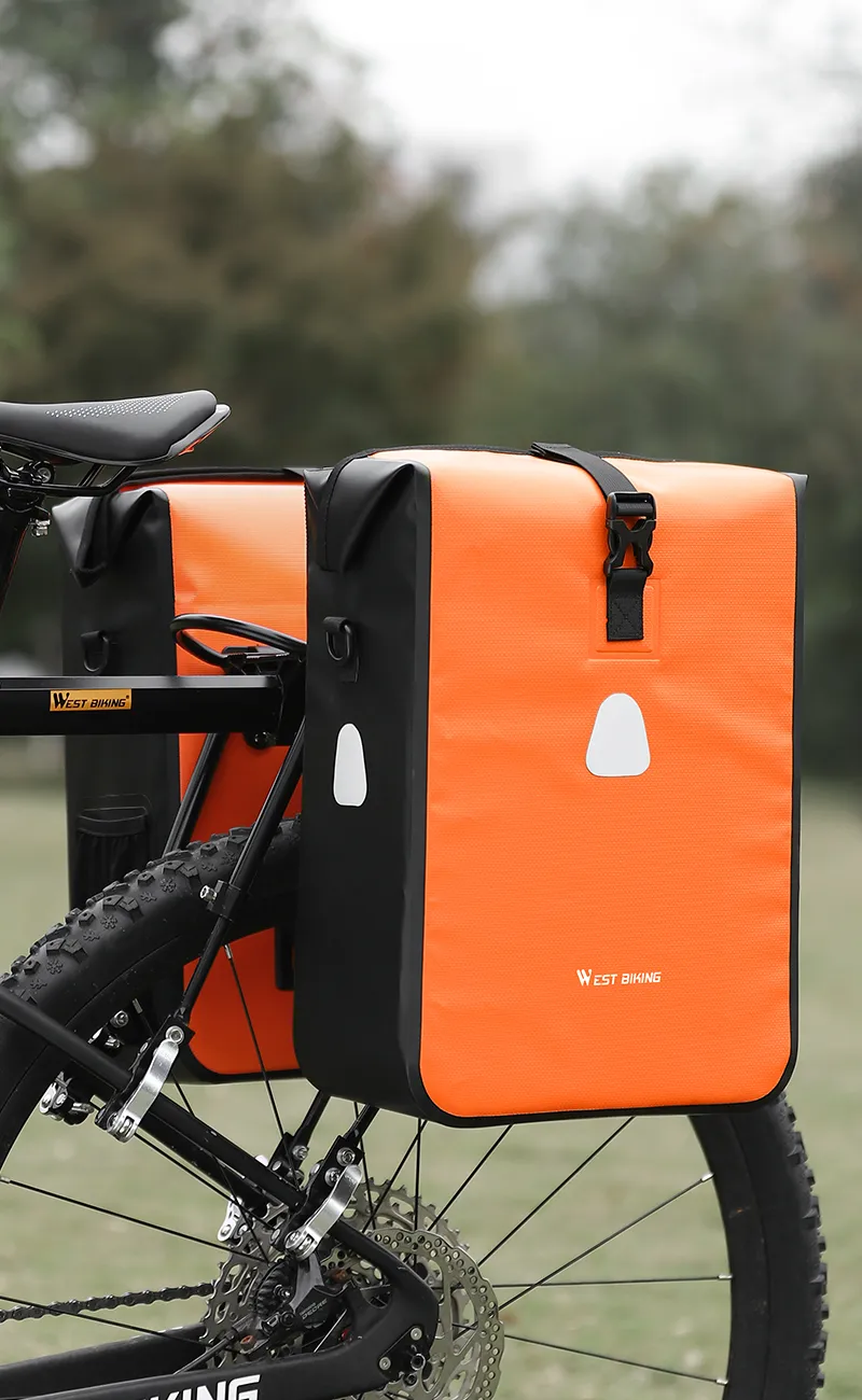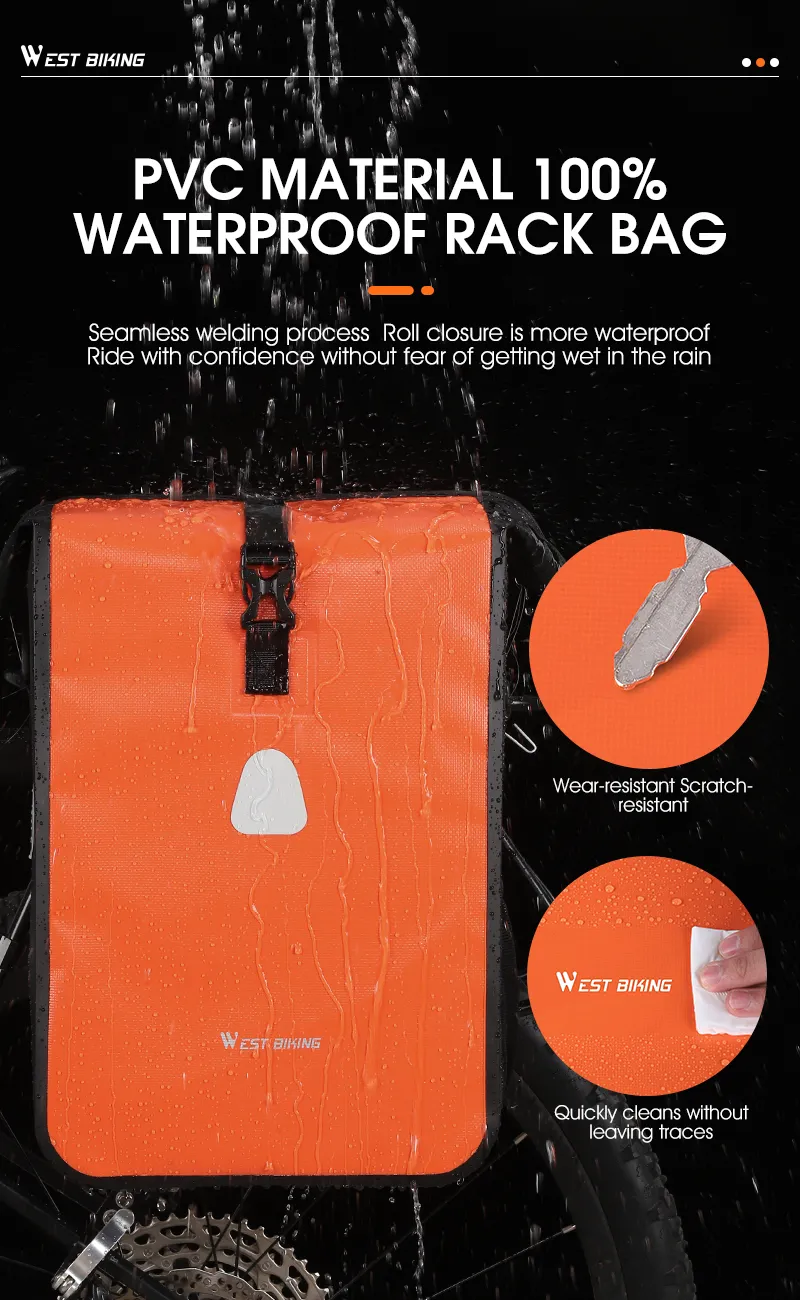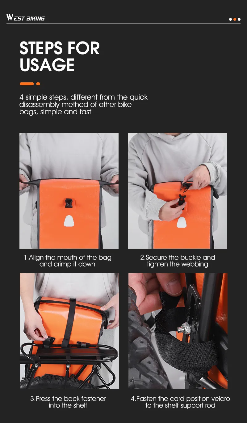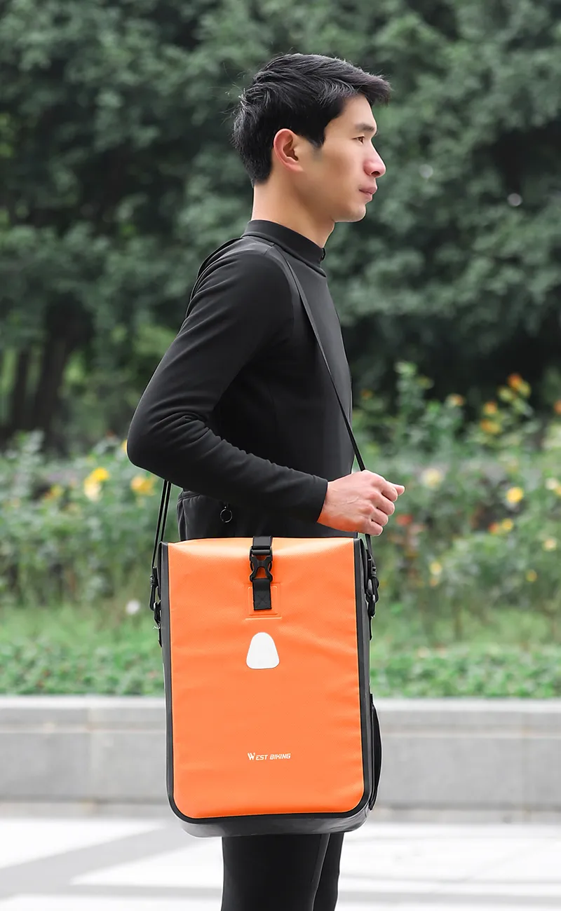 WEST BIKING 12-15L Bike Bag Fully Waterproof Bicycle Rear Rack Seat Pannier Bag MTB Road Bike Side Rear Luggage Carrier Bag Shoulder Bag Cycling Accessories