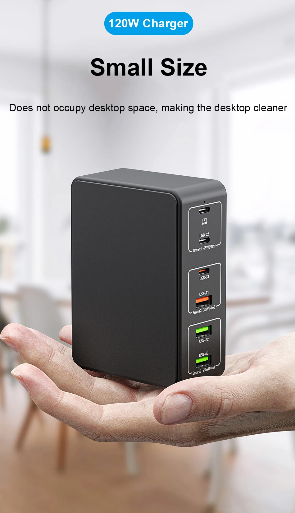 120W USB C Super Fast Charger 6-Port PD 65W PPS45W Phone Laptop USB-C Charging Station for MacBook Pro/Air XPS iPad iPhone