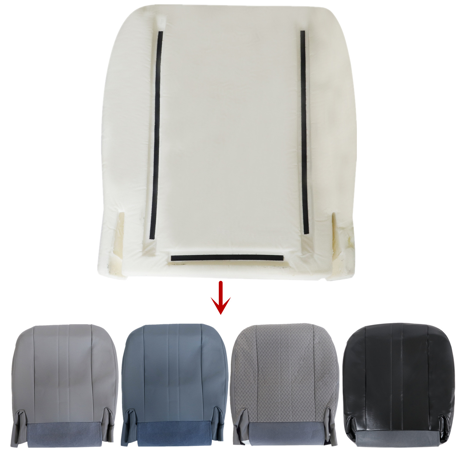 This Front Bottom seat cover & Foam Cushion, built to factory specs with OEM Quality Microfiber Leather / Cloth to match the Interior of your vehicle!