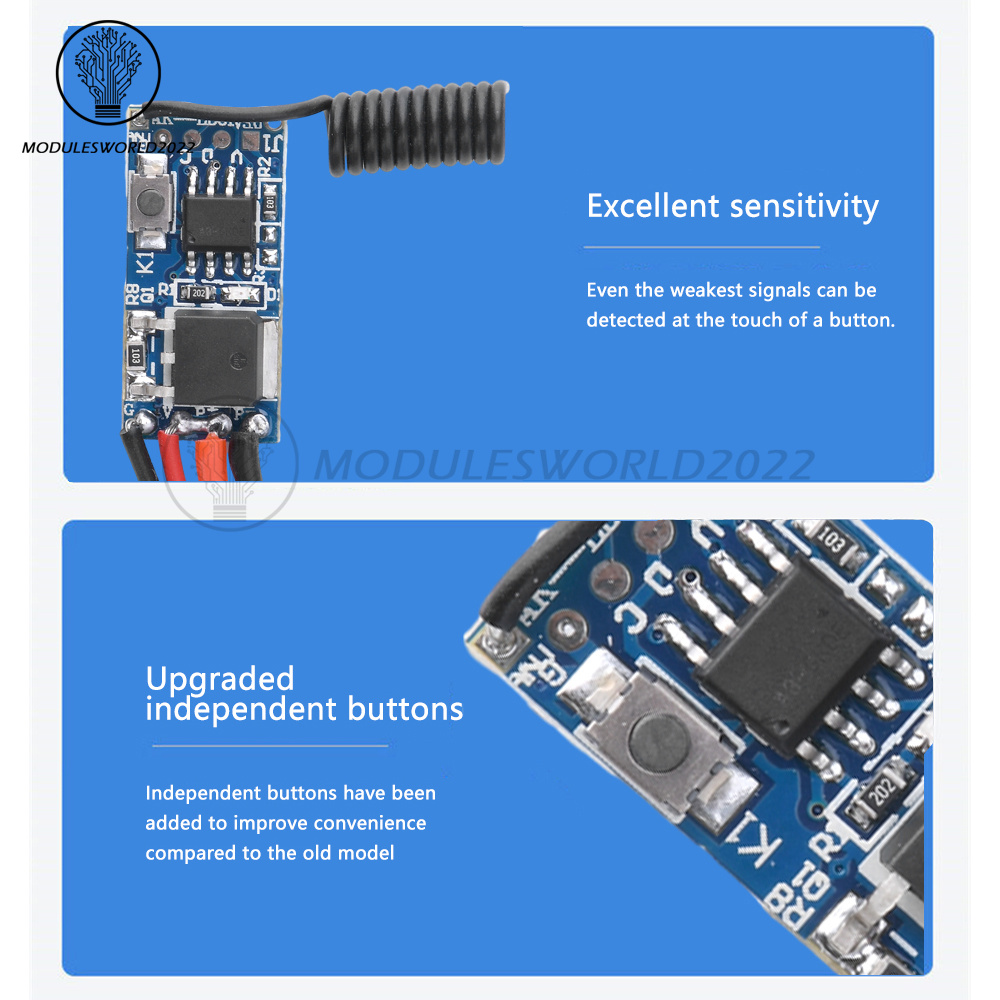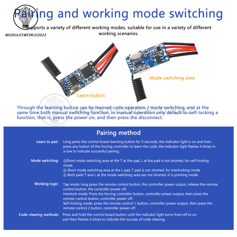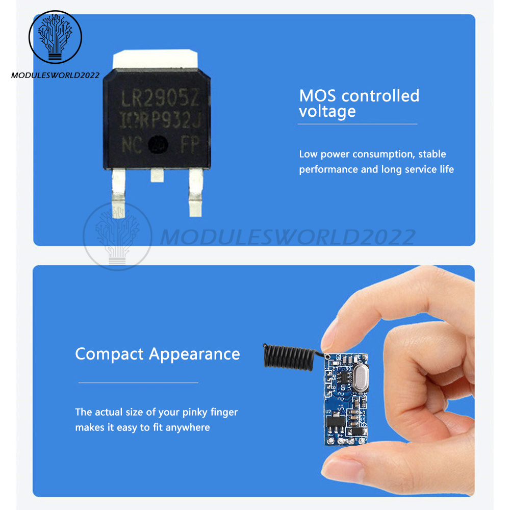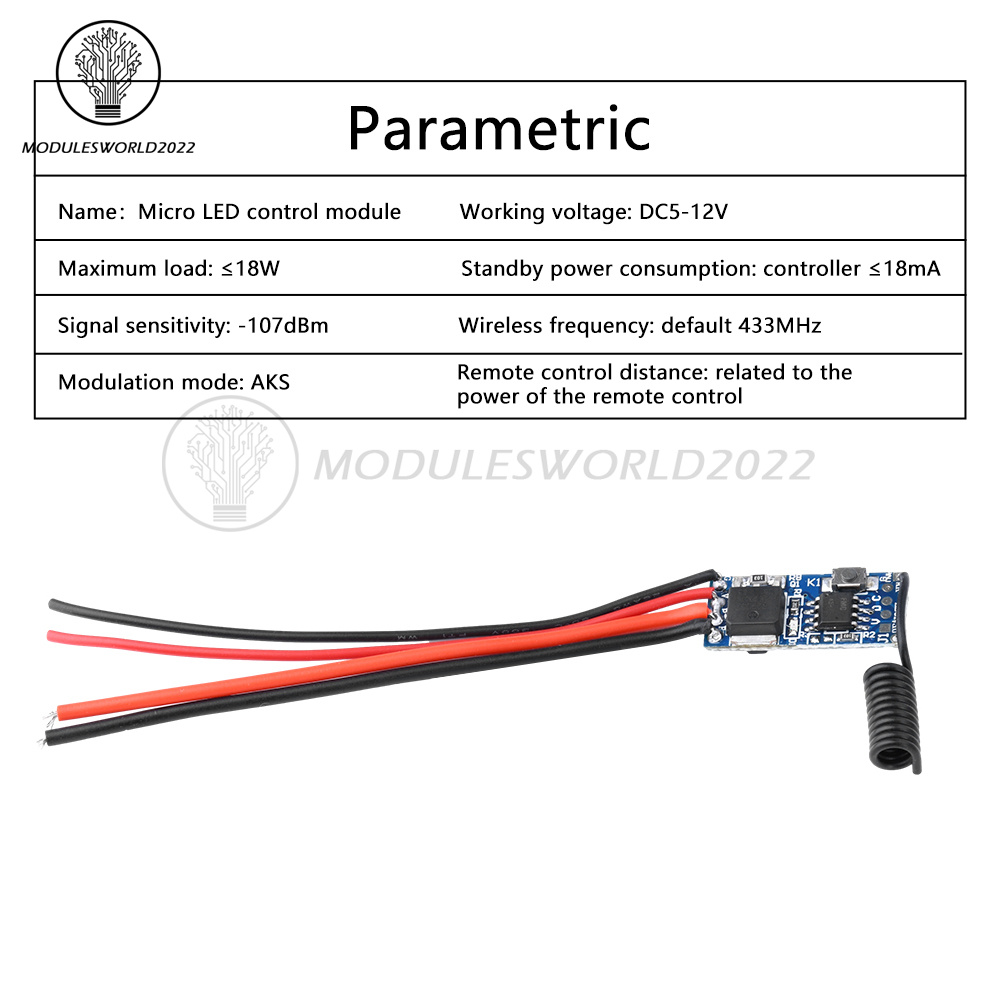 This miniature LED control board adopts high quality RF chip, high sensitivity, low power consumption, high data transmission efficiency and good stability. Programmed by the microcontroller main control chip, the working mode is diverse and easy to switch, single-key use operation is convenient, and the operation of the code is simple and easy to get started. It can be applied in lighting control, smart home and other control scenarios.