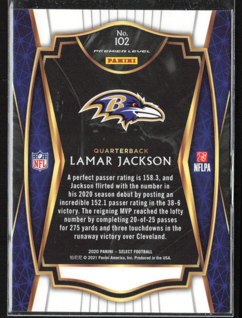 | 2020 Panini Select Premier Lamar Jackson Baltimore Ravens #102 | ||||||||||||||||||
