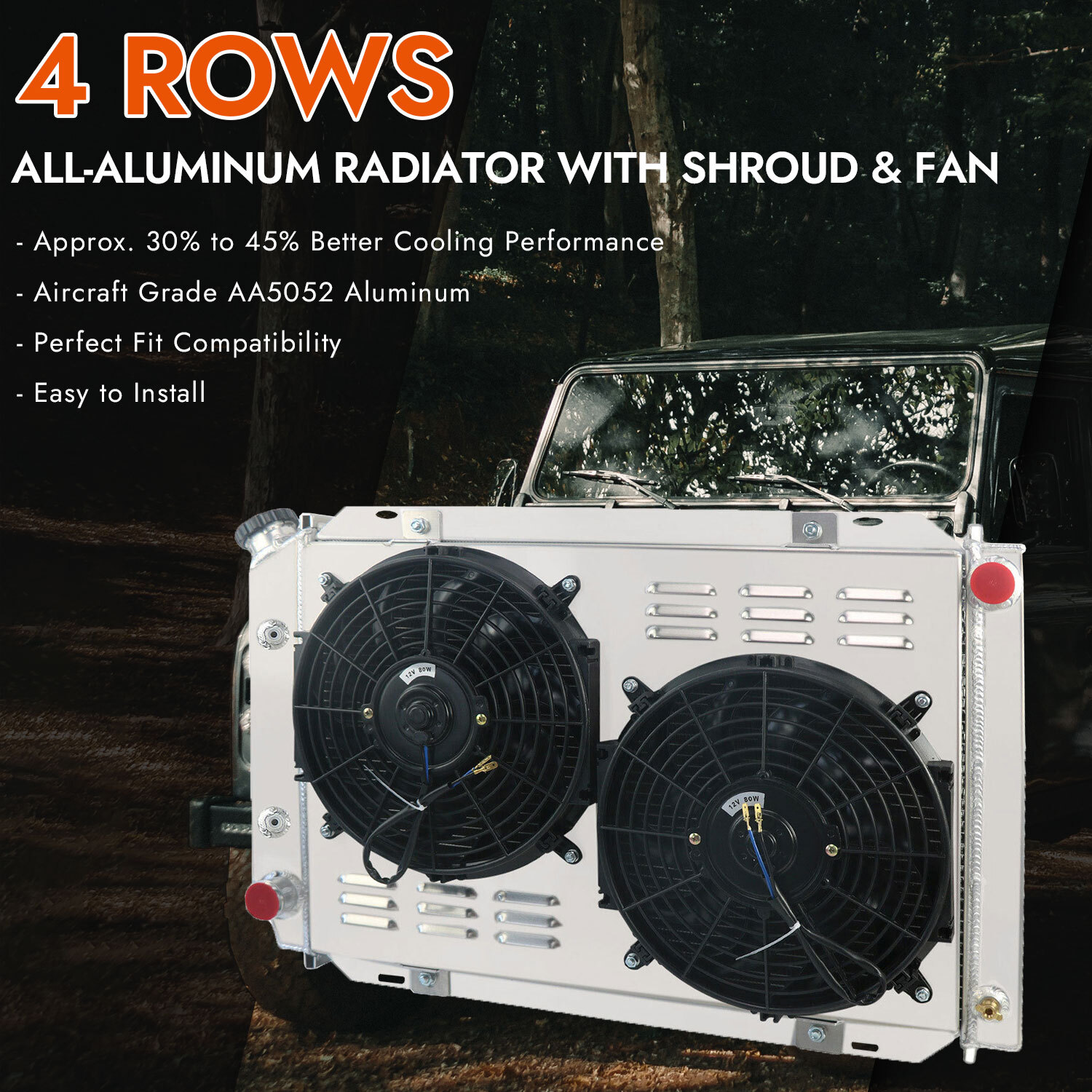 1.Shuttered design AA5052 fan shroud to guaranteed airflow passes high efficiently.Make your engine bay perfect!