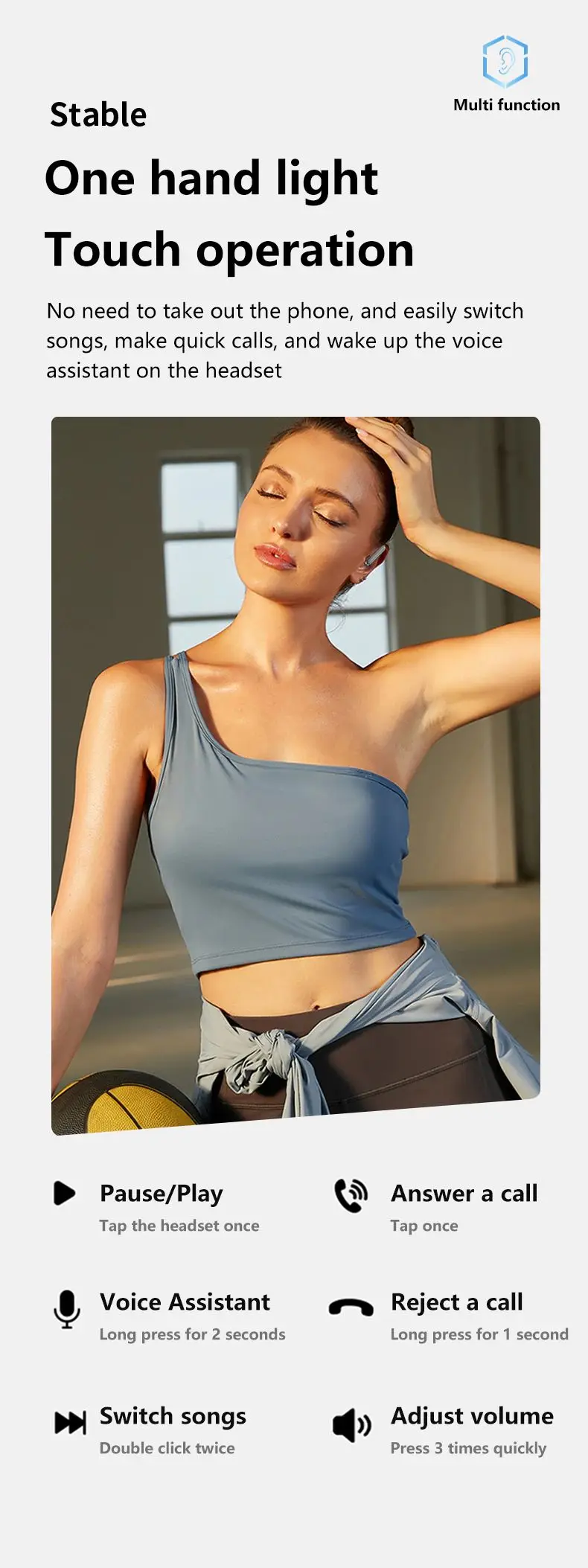 Multi-function touch panel on each earphone helps to play, pause, adjust volume, answer, end calls, activate siri and google assistant more convenient.