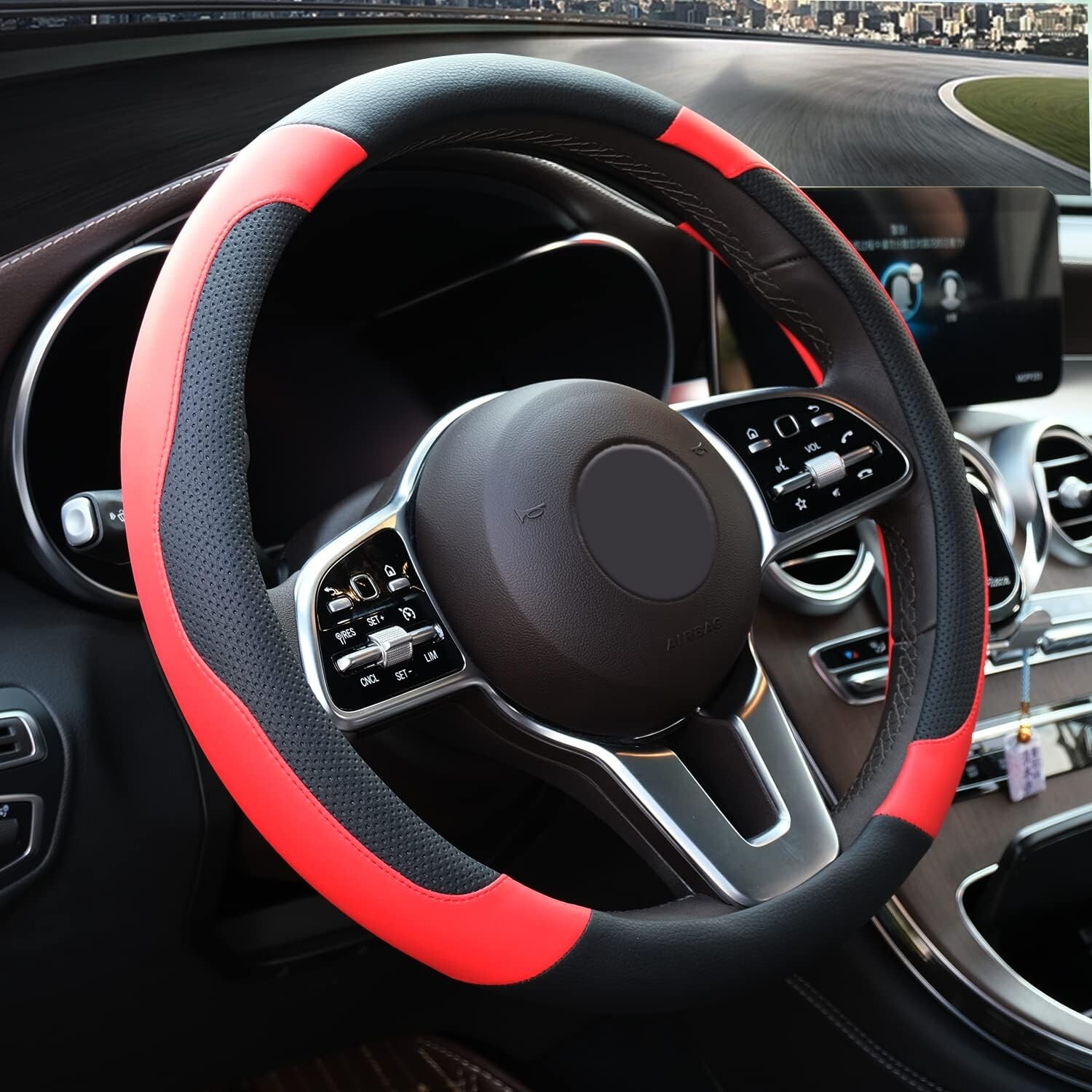 Why choose our Black and Red Microfiber Leather Steering Wheel Cover?