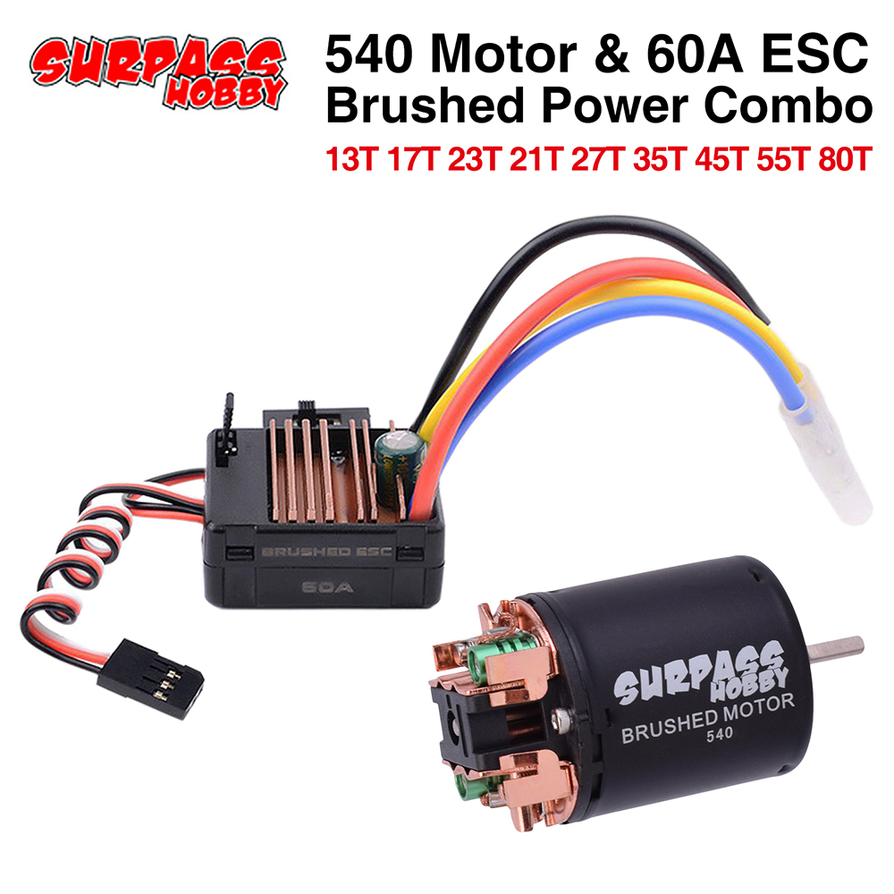SURPASS HOBBY 540 Brushed Motor 13T 17T 21T 23T 27T 35T 45T 55T 80T for 1/10 RC Off-road Racing Car Truck 60A ESC 5V/2A BEC