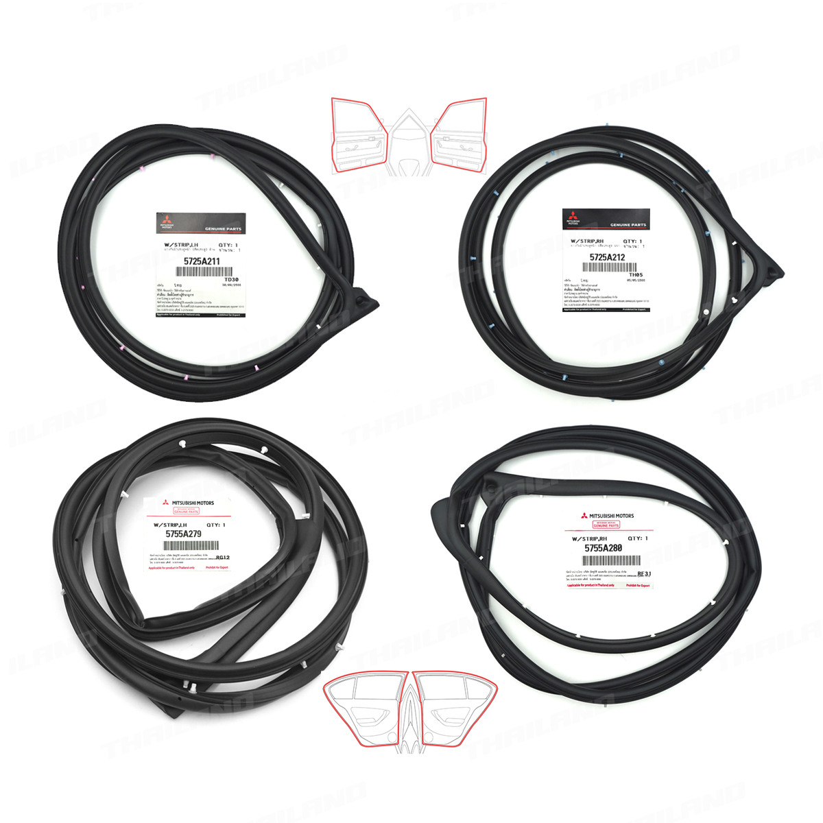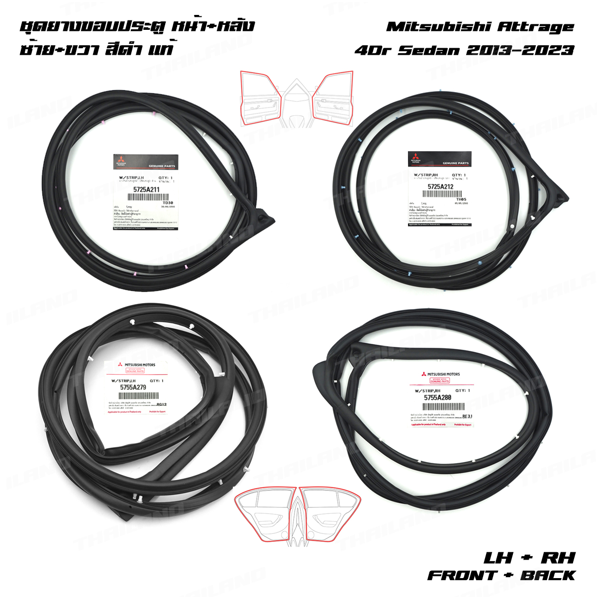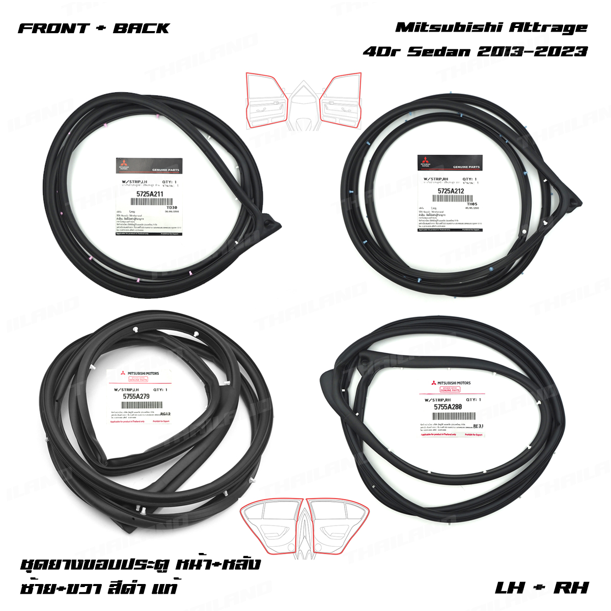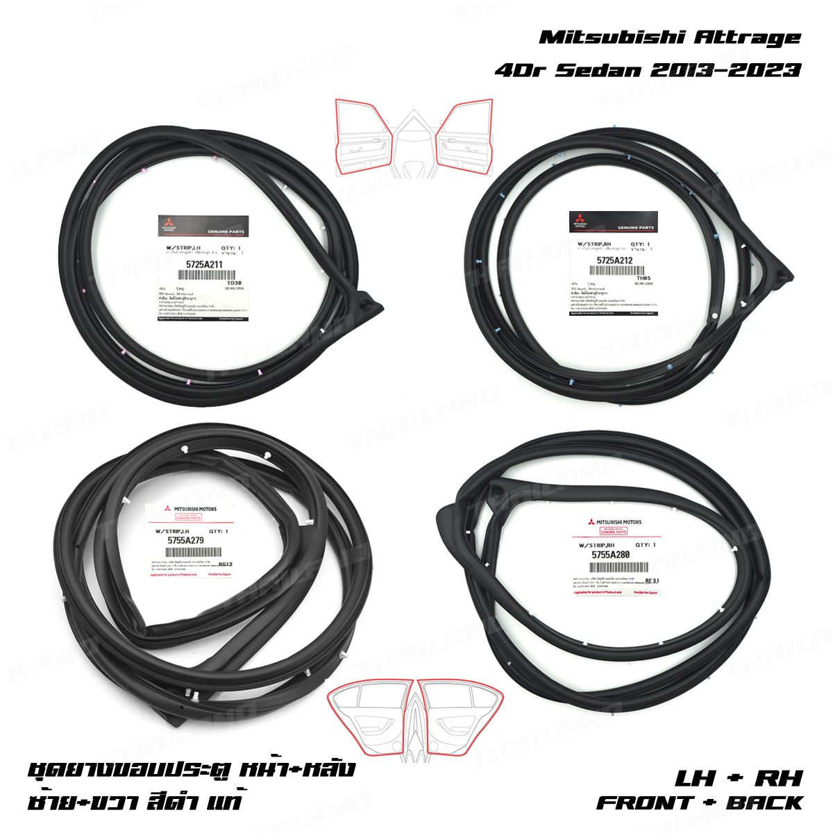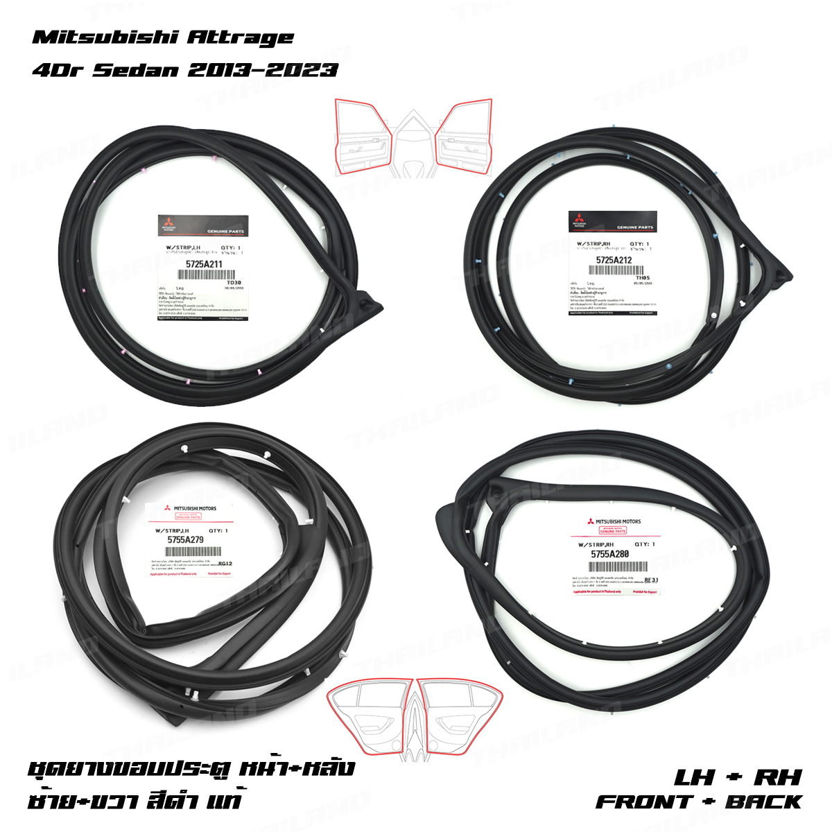 Set 4 Door Rubber Seal Weatherstrip Fits Mitsubishi Attrage 4Dr 2013 - 2023