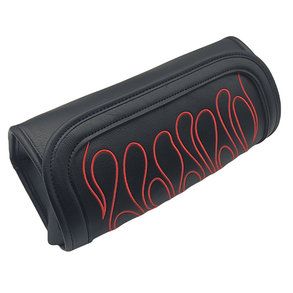 Feature deep-textured 3-D embroidered Flames in a variety of colors; flame design matches saddlemen's tattoo flame seats