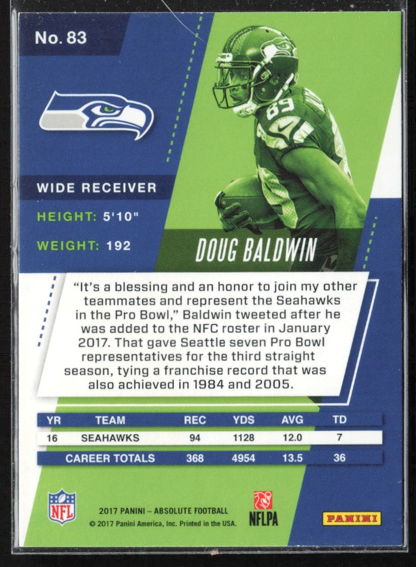 | 2017 Panini Absolute Doug Baldwin Seattle Seahawks #83 | ||||||||||||||||