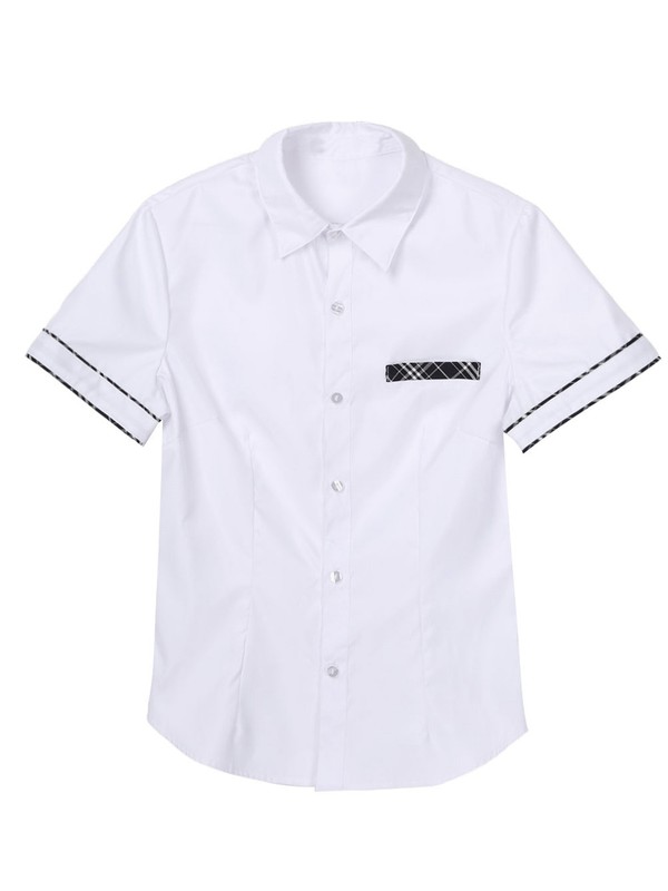Women Schoolgirls Cosplay Costume Student Uniform Tops Turn-down Collar Short Sleeve Button Shirt.