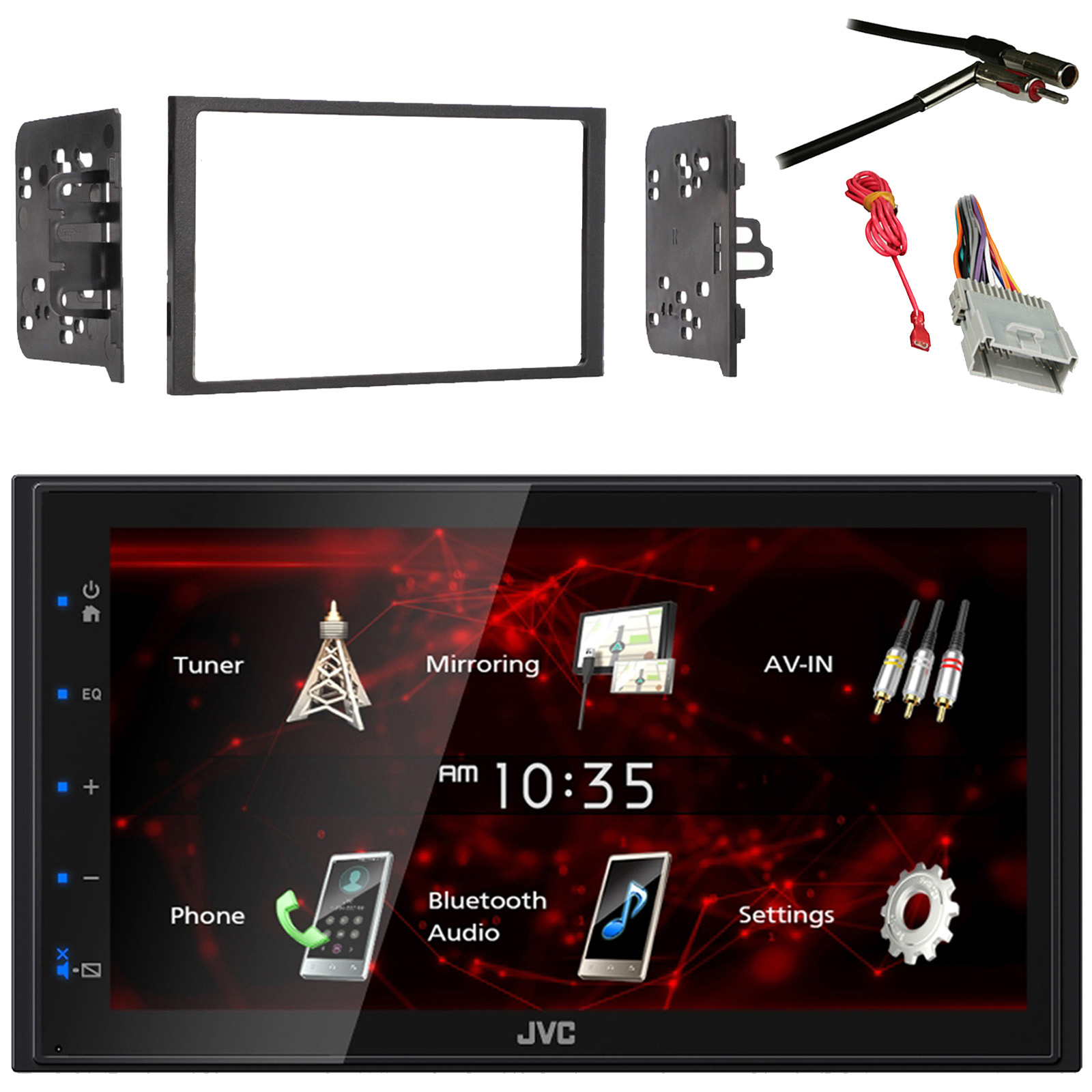 JVC 2DIN Bluetooth USB Car Radio, Antenna Adapter, Harness, 98-06 GM Install Kit