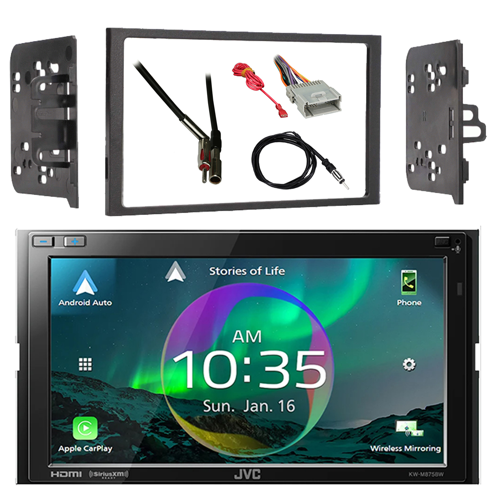 • PACKAGE BUNDLE INCLUDES: JVC KW-M875BW 6.8" Touchscreen Double DIN HDMI/WiFi Bluetooth USB Digital Multimedia Stereo Receiver with 22" Antenna, Antenna Adapter, Wiring Harness, Radio Install Kit For Select 98-Up GM Vehicles