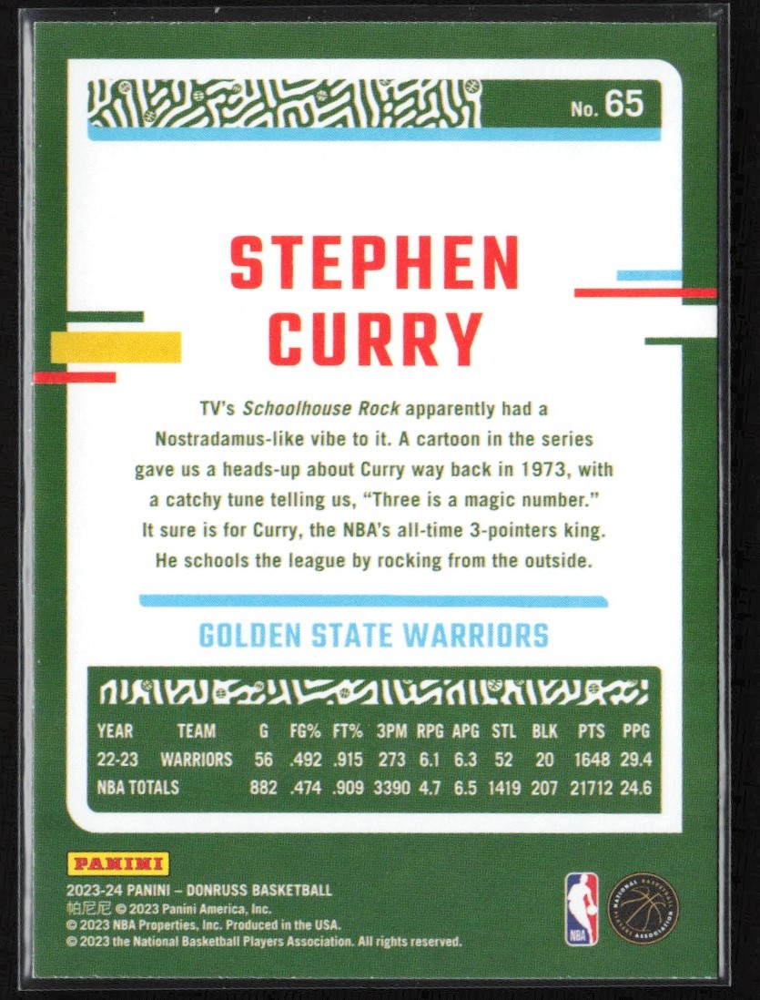 | 2023-24 Donruss Base Stephen Curry Golden State Warriors #65 | ||||||||||||||||||