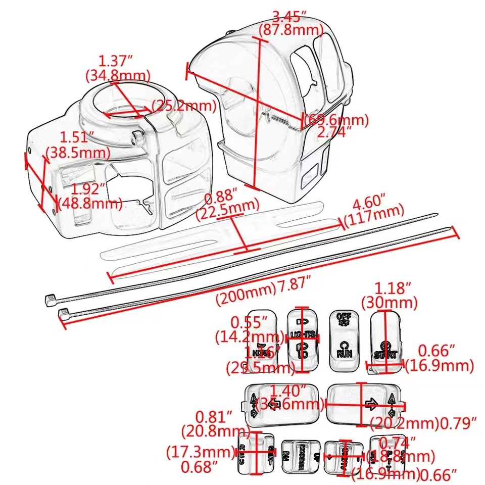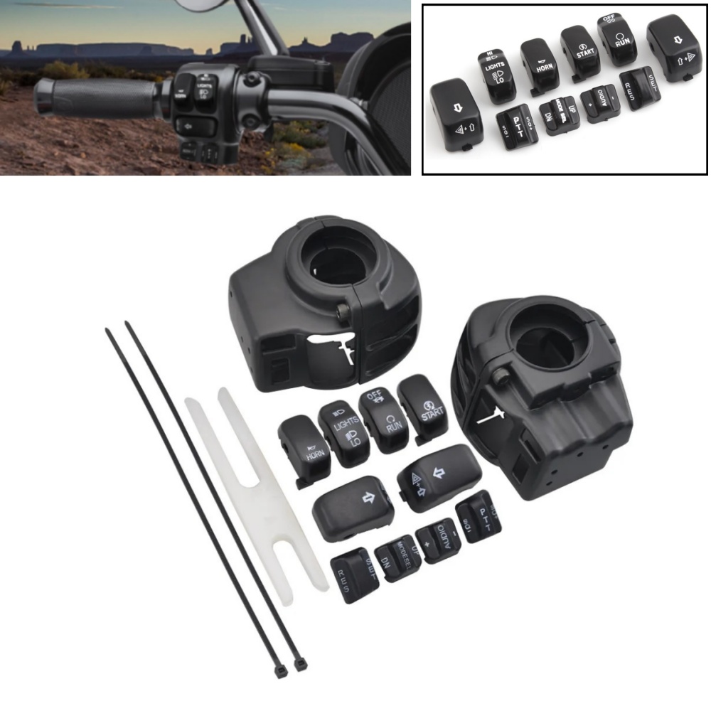 Kit contains a complete set of chrome switch housings and caps for the left and right handlebar switches