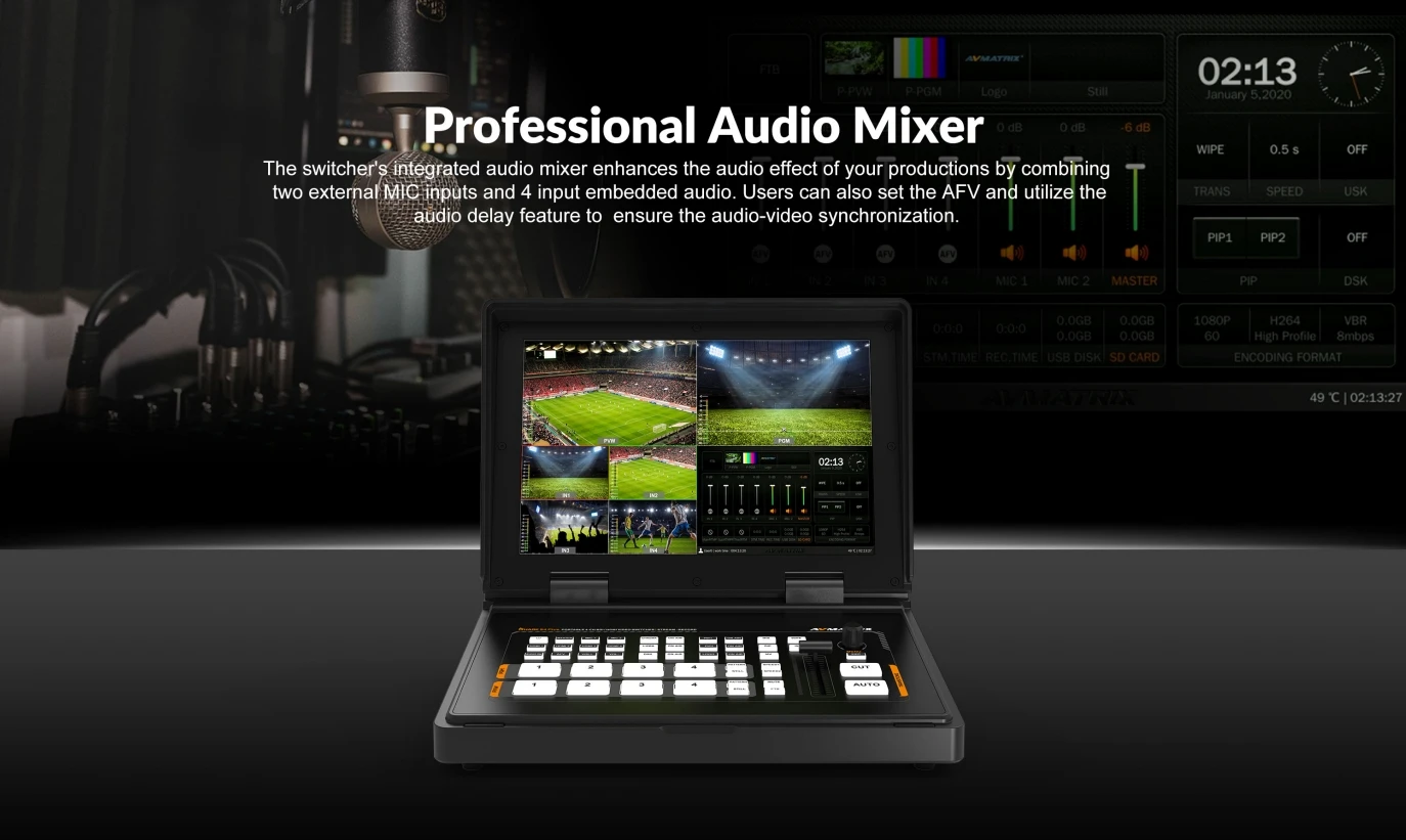 AVMATRIX Shark H4 4-CH HDMI Streaming Video Switcher USB Capture for Streaming