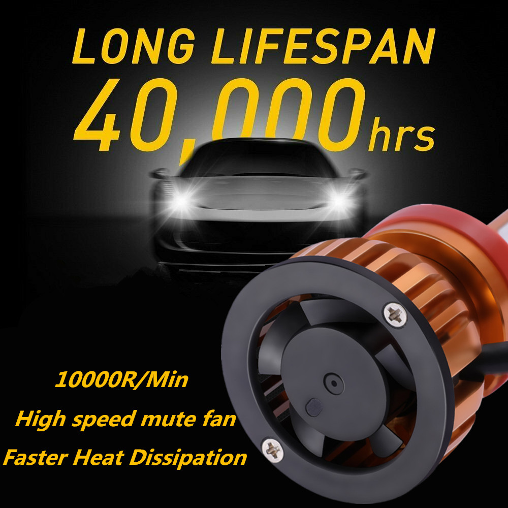 ★ TURBO FAN and WATERPROOF DESIGN : 9005 H11 LED headlight kit design IP68 waterproof. It can work underwater! Rainproof driver, it also shockproof. 12,000 RPM high speed turbo fan will help the heat dissipation. In this way can ensure the bulbs lifespan last more than 50,000 hours. Buy it