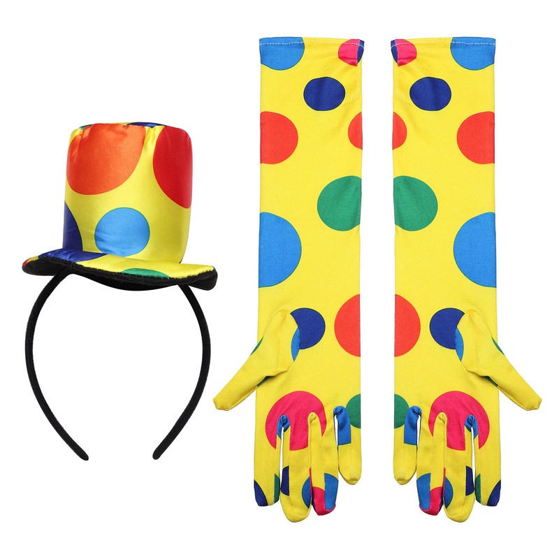 Unisex Clown Cosplay Soft Headwear Colorful Gloves Carnivals Dress Up Circus