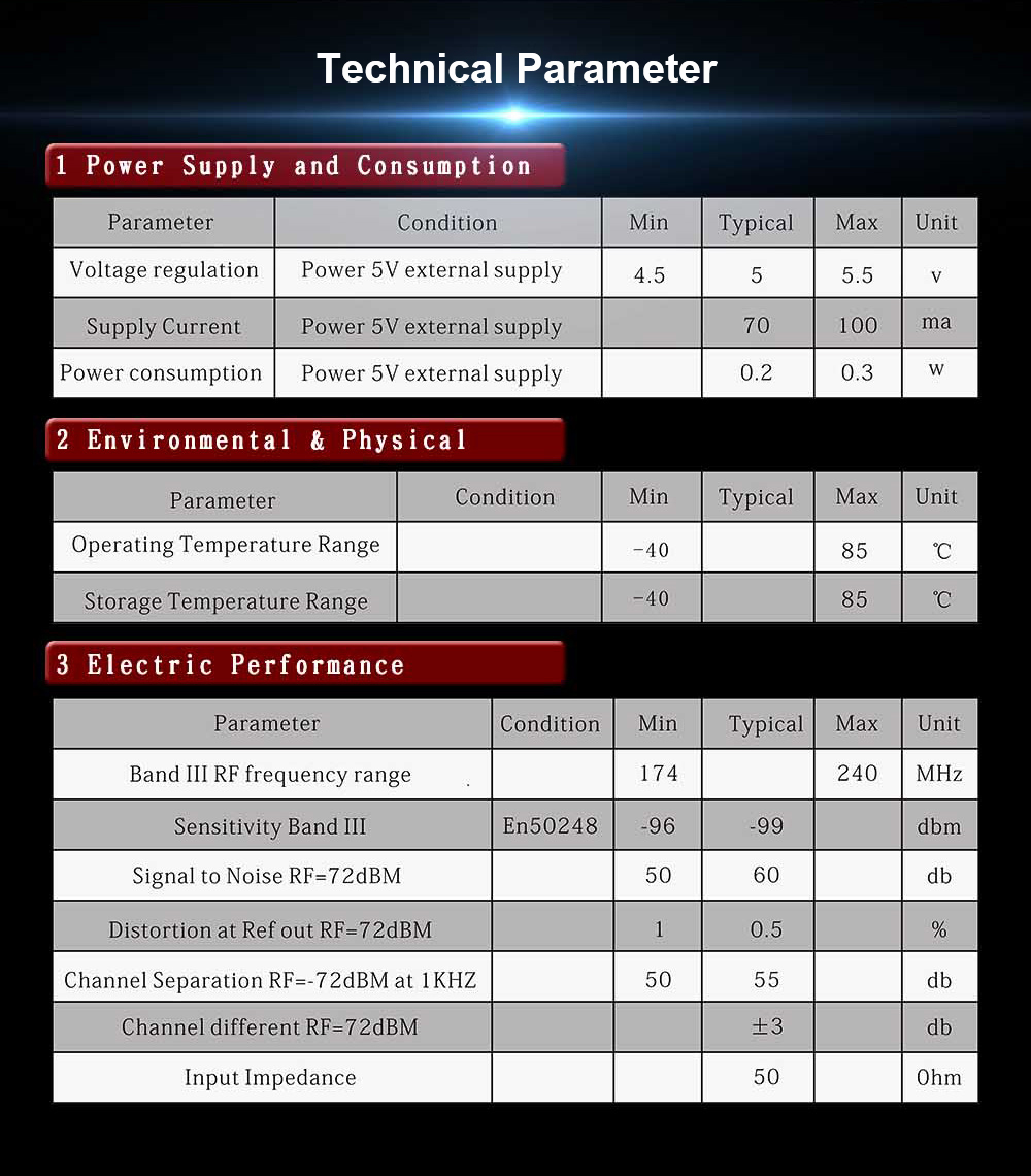 Das SNR liegt bei über 98 dB, die Codierungsrate bei 192 KBit / s, was für die Verwendung in Umgebungen mit intensiven Bewegungen wie der Verwendung im Auto geeignet ist.