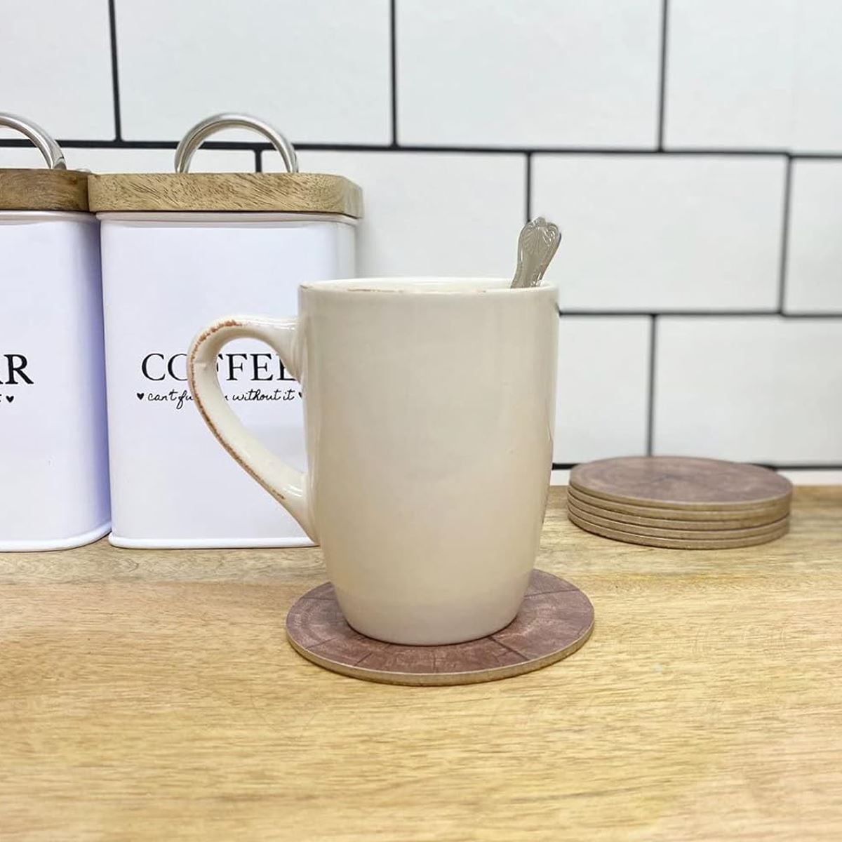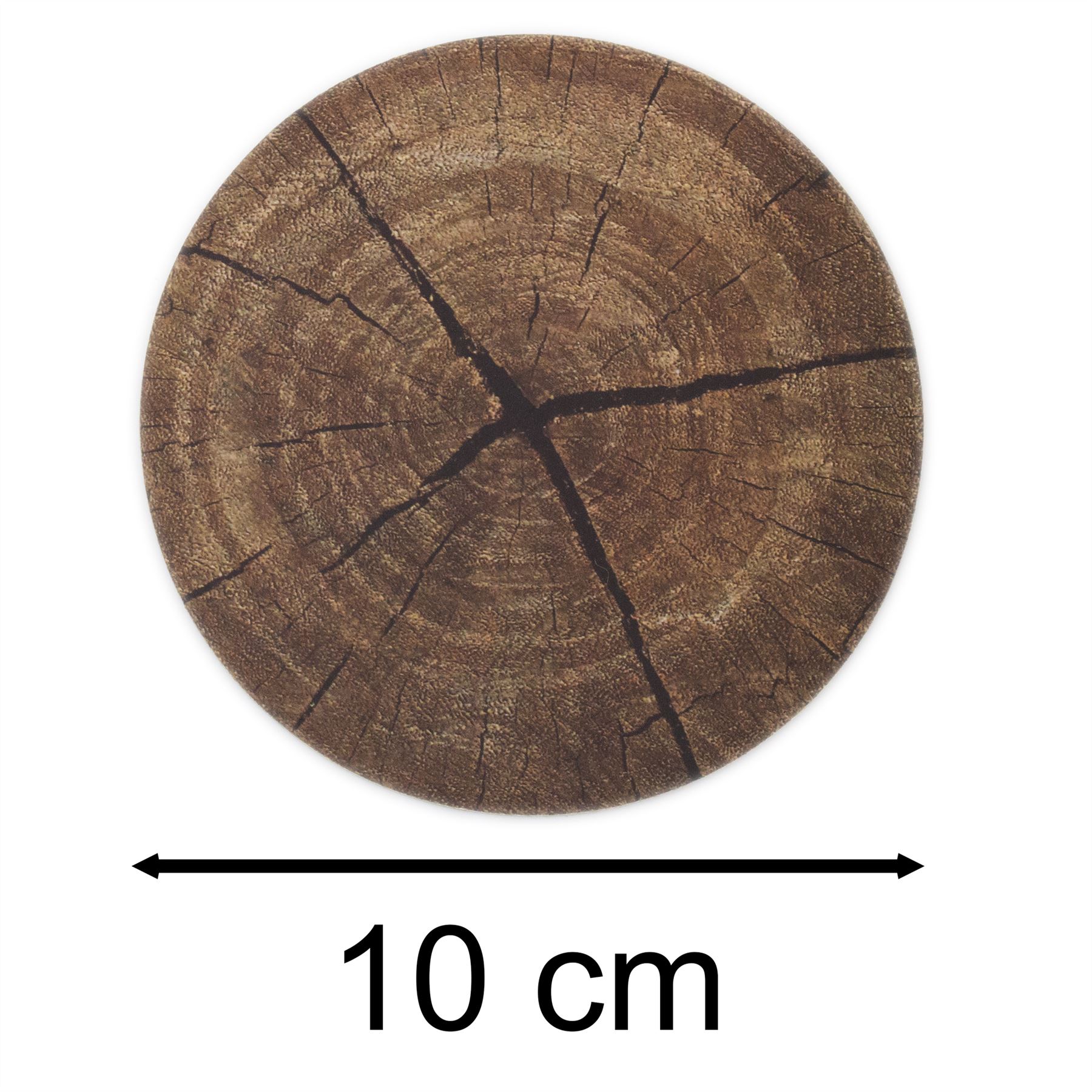 Product description Elevate your table settings and bring the outdoors in with these trendy tree slice bark design coasters SET OF 6 COASTERS | These coasters seamlessly blend natural beauty with practicality, featuring a stunning tree bark print and durable cork backing. Enhance your table settings and protect your surfaces in style with these charming coasters TREE COASTERS | Designed to blend seamlessly with any decor style, these coasters add a touch of rustic elegance to your table settings MUG COASTERS | Crafted with durability in mind, these coasters are built to withstand daily use. The non-slip cork base provides stability, while the heat-resistant laminated surface ensures protection against hot beverages TEA & COFFEE COASTERS | Care and cleaning of these pieces couldn't be easier - simply wipe them with a damp cloth at the end of the night to leave them looking as good as new ROUND COASTERS | With a generous diameter of 10cm, these coasters offer ample space for your favourite mugs, glasses, or cups |