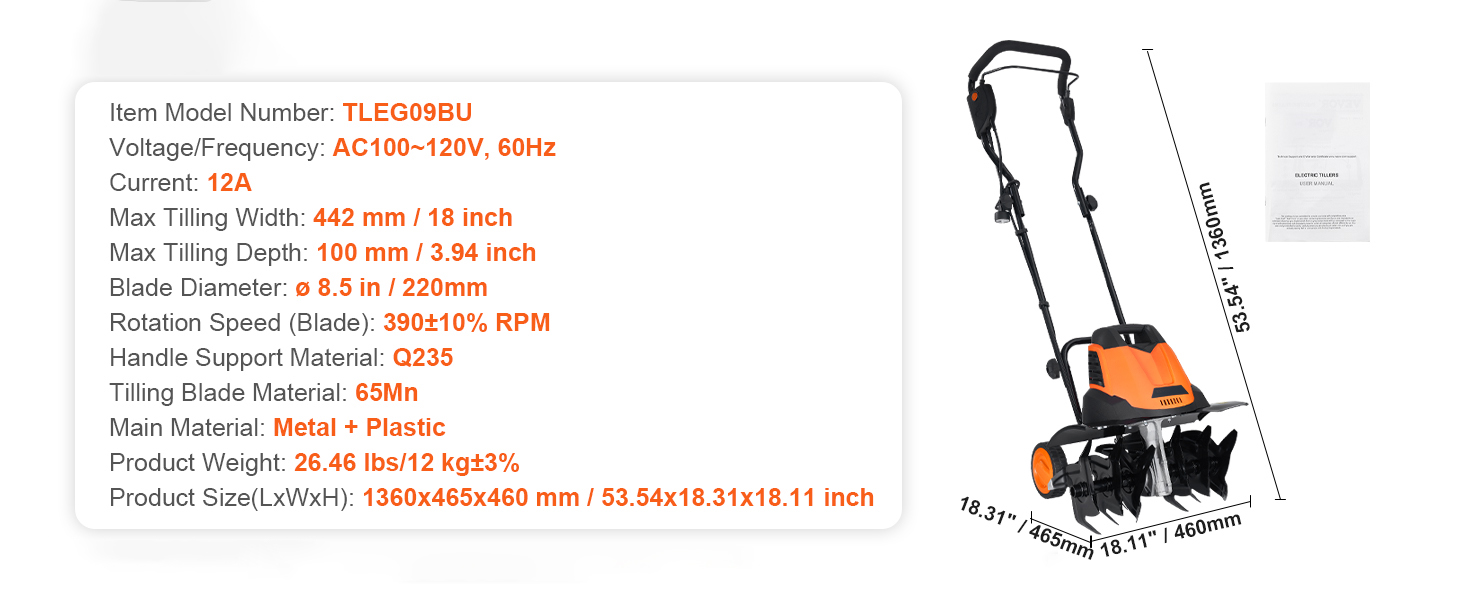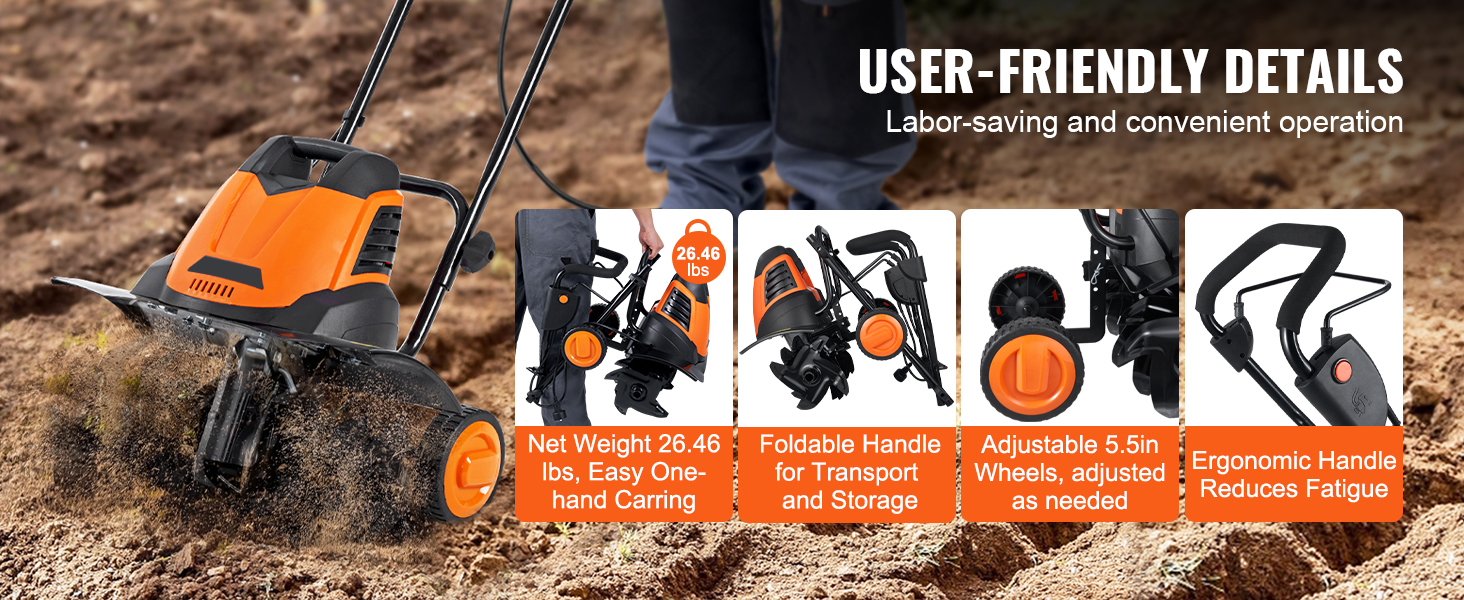 The garden tiller is ideal for for pre-cultivation, breaking up clods, loosening the soil, and creating a conducive environment for plant growth. Suitable for diverse settings, such as home gardens, flower beds, lawns, orchards, and more, it meets all your needs.