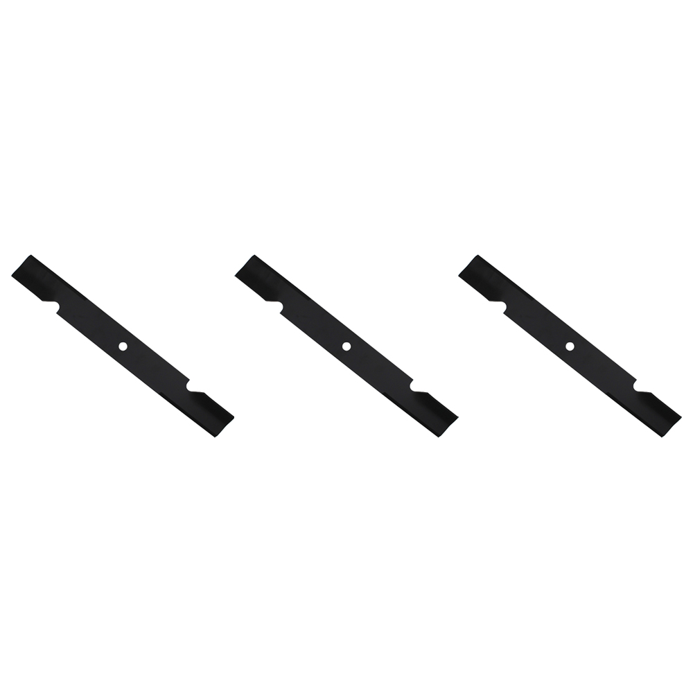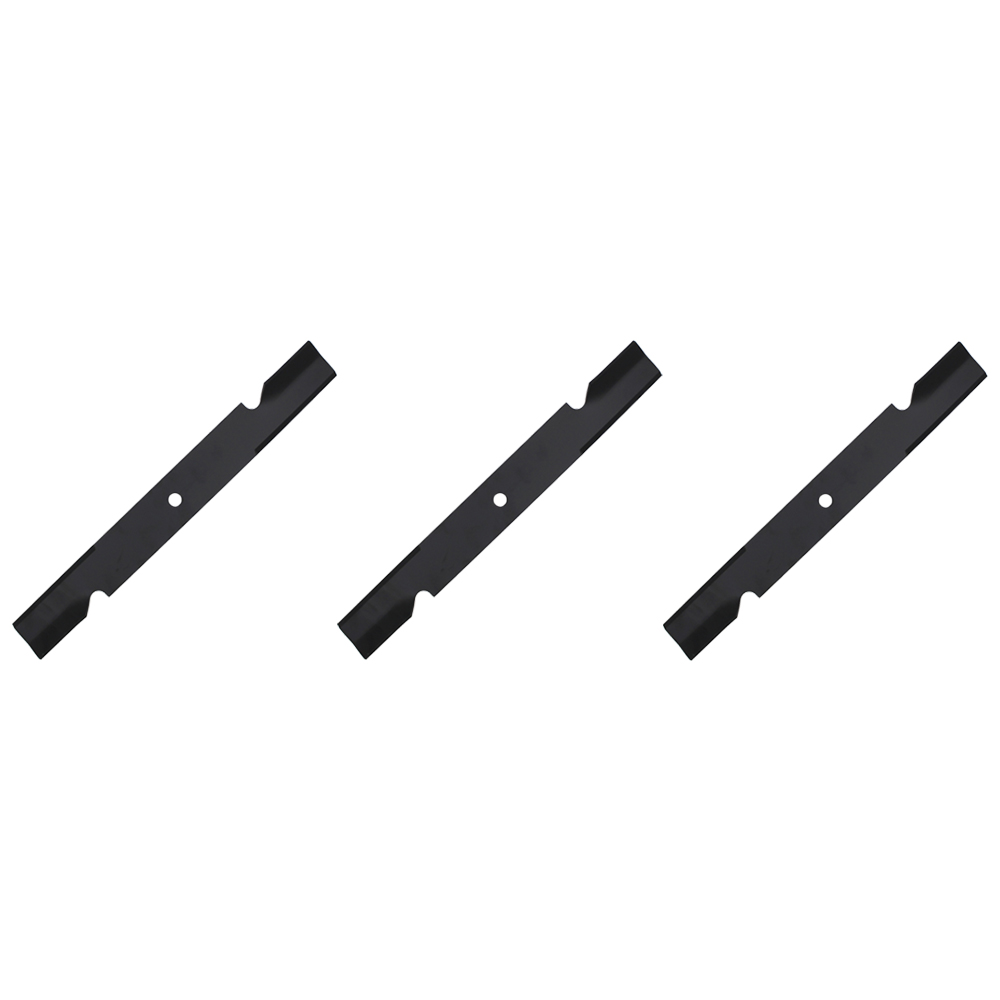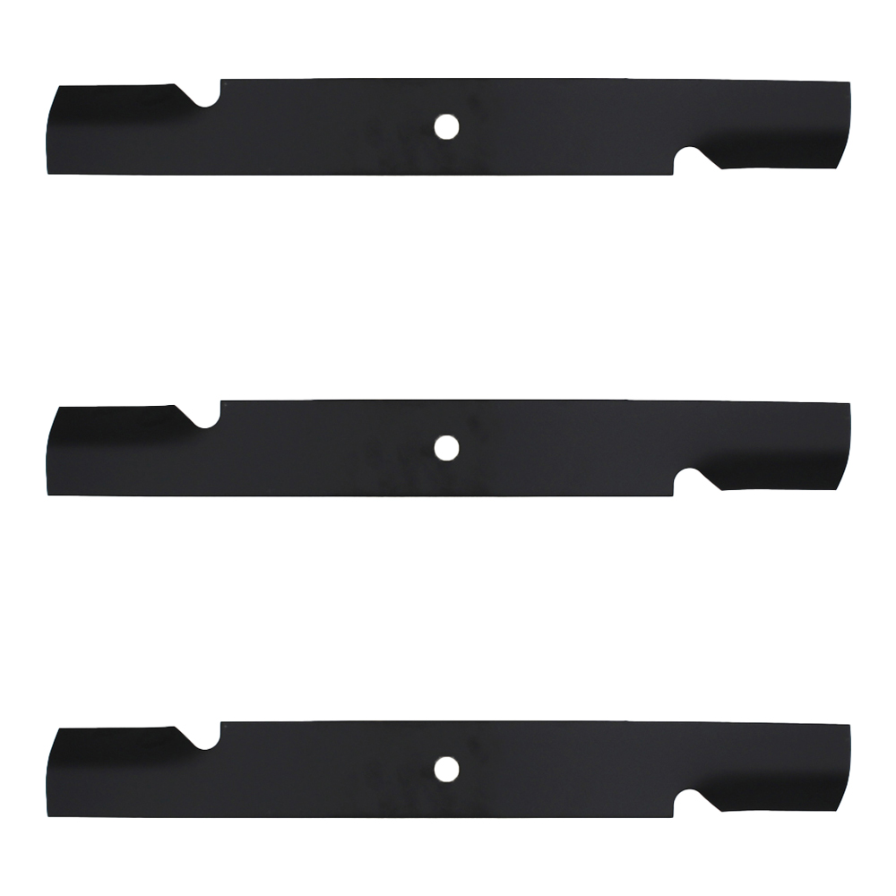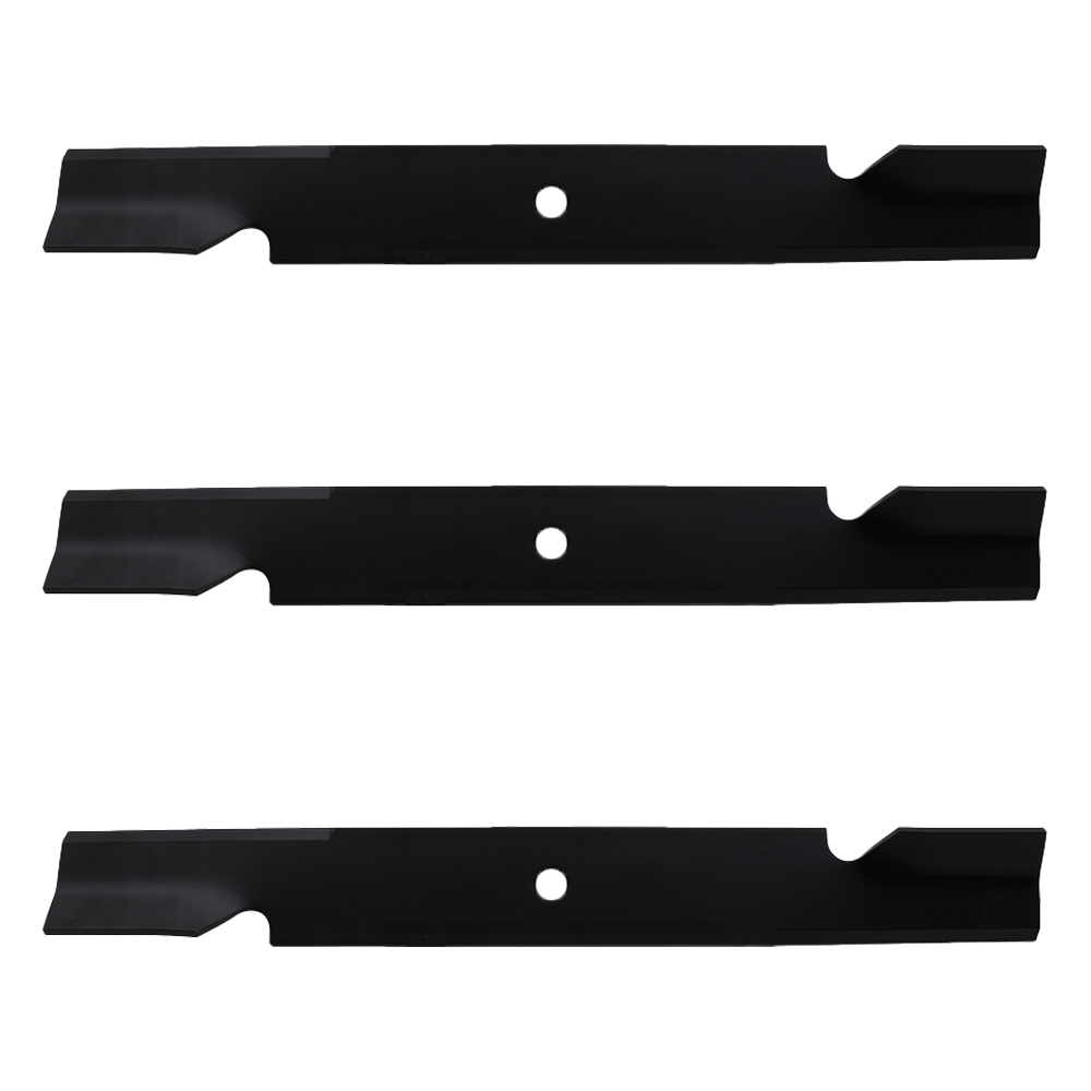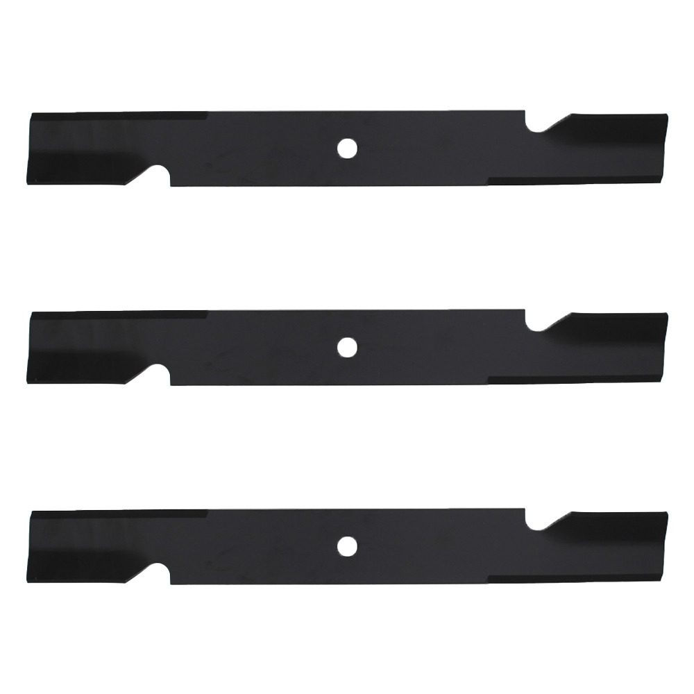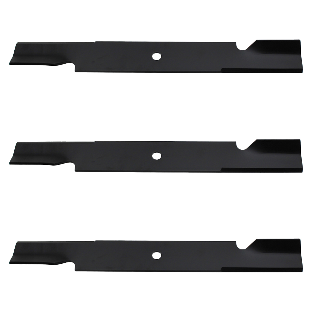 DESCRIPTION This set of three high lift mower blades is a direct aftermarket replacement for Scag OEM part 482881, designed for 61-inch mowing decks on zero-turn and lawn/garden tractors. The newer-style high lift design features a longer air lift wing for improved airflow, superior grass discharge, and a cleaner, more consistent cut. Three blades are required to complete a full 61-inch deck replacement. Scag: Turf Tiger, Wildcat, Cheetah, Super Z, V-Ride (SVR61V-25FX, SVR61V-26CV, SVR61V-29FX, SVR61V-801FX, SVRII-61V-40BV-EFI), SCZ61RD-31FX, SCZ61RD-921FX, SCZ61V, SCZ61V-27FX, SCZ61V-29CV-EFI, SCZ61V-31CV-EFI, SMST-61V, SMT-52A, SMT-61A, STT-29CH-EFI, STT-31EFI-SS, STT-35BVAC, STT52V-27CH, STT52V-29CH-EFI, STT61V-27CH, STT61V-27KA, STT61V-29CH, STT61V-29DFI, STT61V-35BVAC, STT61V-750KA, STT61V-791DFI, SWM-61A, SWM-61V, SWMU-61A, SWZ (requires 3 for 61" deck) Bad Boy: Outlaw, Outlaw Extreme (requires 3 for 61" deck); PZ7234FX, PZ6029D, PZ6030CV, PZ6034FX, PZ6034FXZT, PZ6029PFX, PZ6029FX, PZ29FXBF, PZ34FXBF, PZ29D, PZ29DCE, PZ29CE, PZ5426FX, PZT6128BS, IS5100Z, IS4500Z, IS3100Z, IS2000Z, 1000Z, PCT4818B, PCT6118B, PCM4818K, PCM6118K, PCM61200, PCW6114K, Prowler Mid-Cut (requires 3 for 61" deck) Fits Ferris: IS2000Z, IS3100Z, IS4500Z, IS5100Z, Z560LS (requires 3 for 61" deck) Fits Bobcat: Models with 61" deck Dixon: Models with 61" deck Encore: Models with 61" deck Fits Grasshopper: 3900 series Fits Husqvarna: PZ series with 61" deck Jacobsen: Models with 61" deck Fits John Deere: Models with 61" deck Lesco: Models with 61" deck Simplicity: Models with 61" deck Snapper / Snapper Pro: Models with 61" deck Spartan: Models with 61" deck Wright: Models with 61" deck Also fits: Ariens, Bunton, Gravely, Great Dane, Fits Massey Ferguson models with compatible 61" deck configurations. Also fits select Giant Vac, Kees, and Lastec equipment. Scag: 482881, 482879, 481712, 481708, 48111, A48111, 48304, A48304 Rotary: 16339 | Oregon: 91-626 New aftermarket replacement part - not remanufactured, not used.Set of 3 New Aftermarket Replacement High Lift Mower Blades for Scag, Fits Ferris, Snapper, and More - 61" Deck