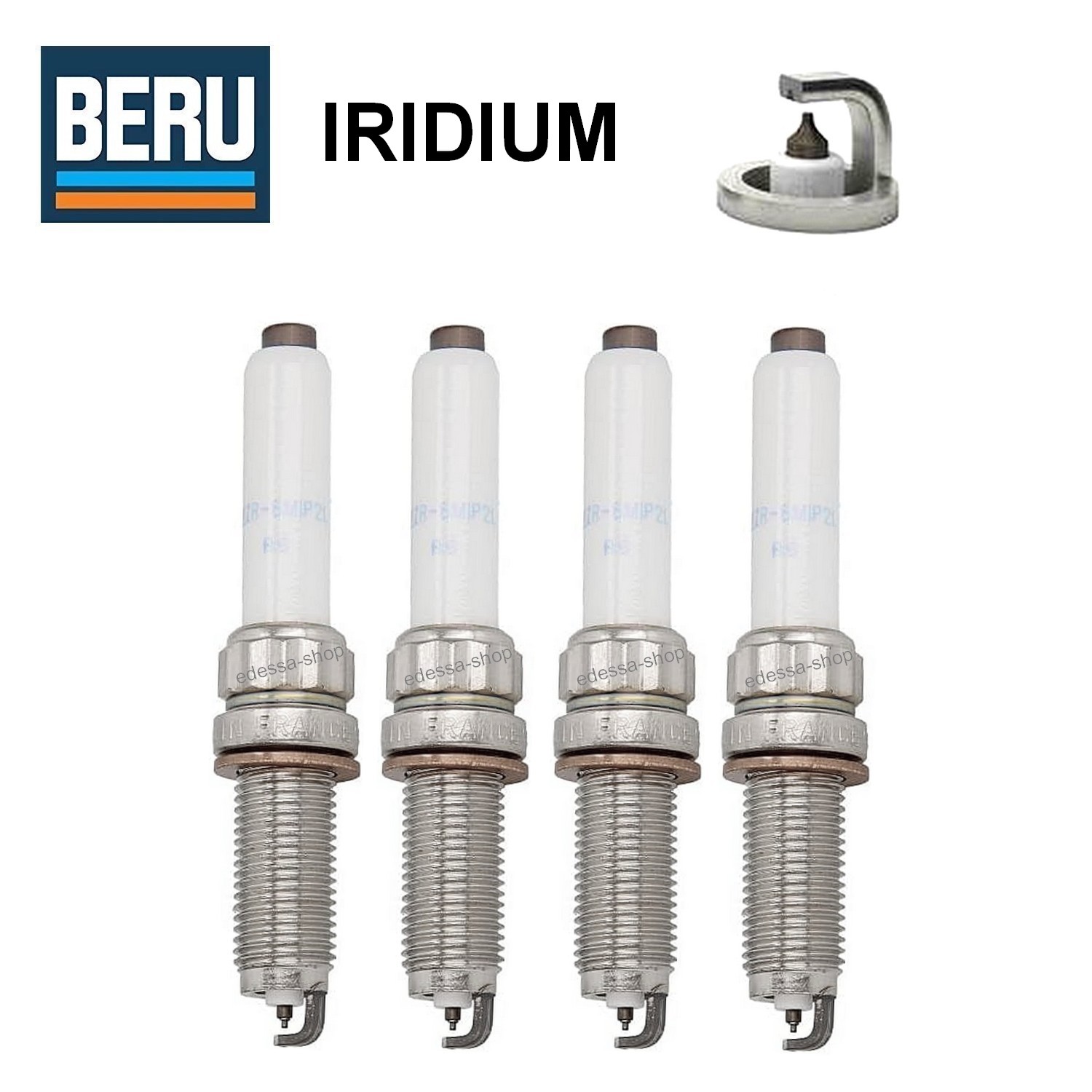 - BERU Iridium-Zündkerzen stellen derzeit die qualitativ hochwertigste technische Lösung dar. Sie weisen eine Iridium-Legierung an der Mittelelektrode auf, die in einem speziellen Verfahren mit Hilfe eines Lasers angeschweißt wird. Das Edelmetall Iridium ist eines der härtesten Metalle der Welt. Sein Schmelzpunkt beträgt 2450 °C und ist daher besonders resistent gegen Funkenerosion. Durch den Einsatz dieses Metalls wird die Lebensdauer, im Vergleich zu herkömmlichen Zündkerzen aus Nickel, im Durchschnitt verdoppelt.