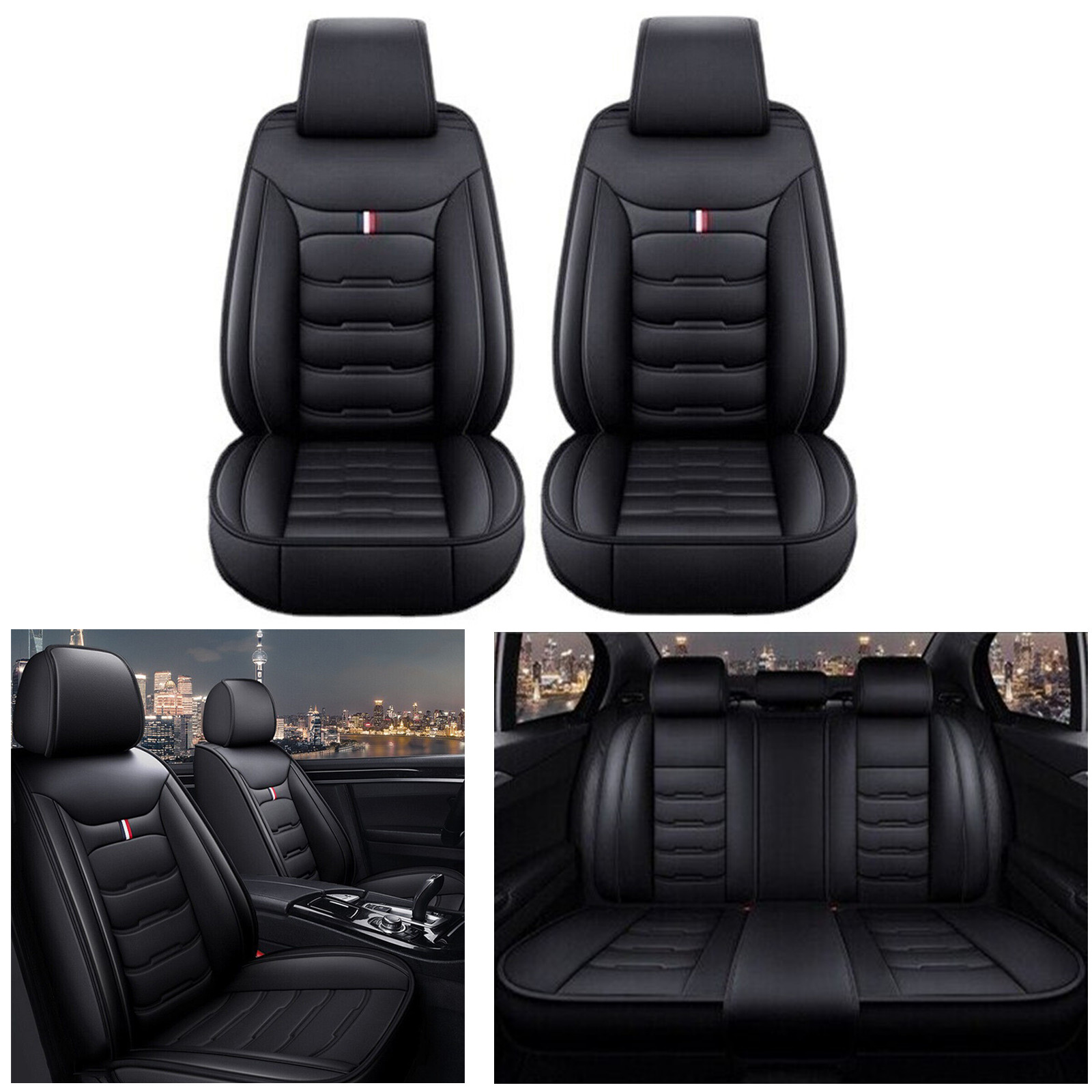 Front & Rear Leather Seat Covers Full Set 5-Sits Cushion Protector For Honda