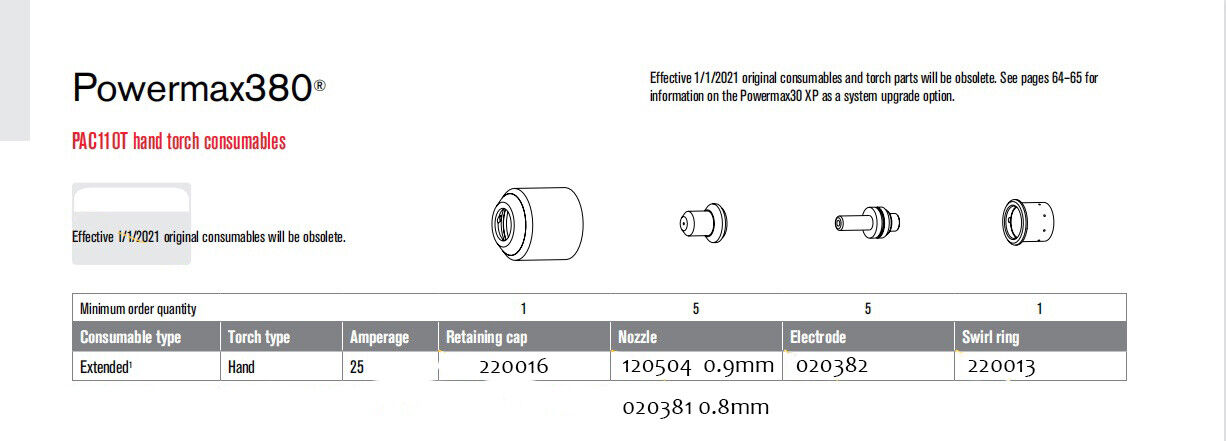 ◆ Torch Model: Plasma for your Powermax380 plasma Torch.