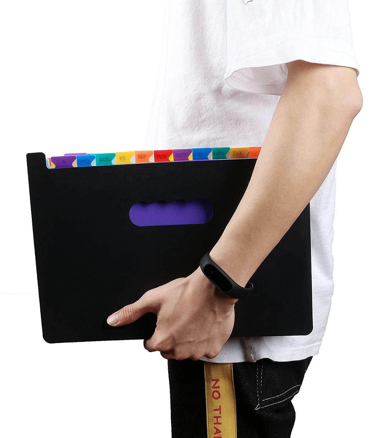 【Large Capacity】: Large-capacity file folder keeps each section's papers separate and organized. A4 Letter Size expandable file.