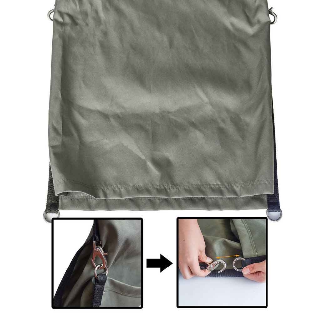 * Bottom flap unhooks to easily unload directly into receptacles.