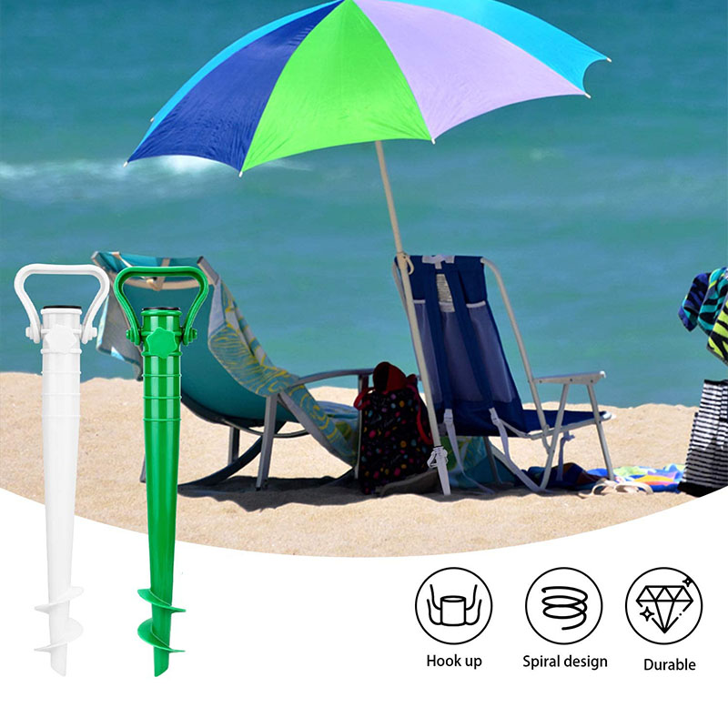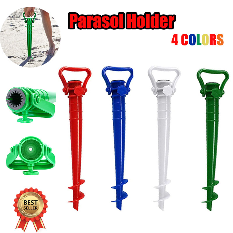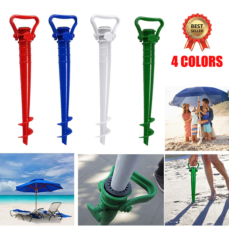 Simply screw the auger into the sand, dirt or grass, place your umbrella in the base holder, tilt accordingly, and enjoy.