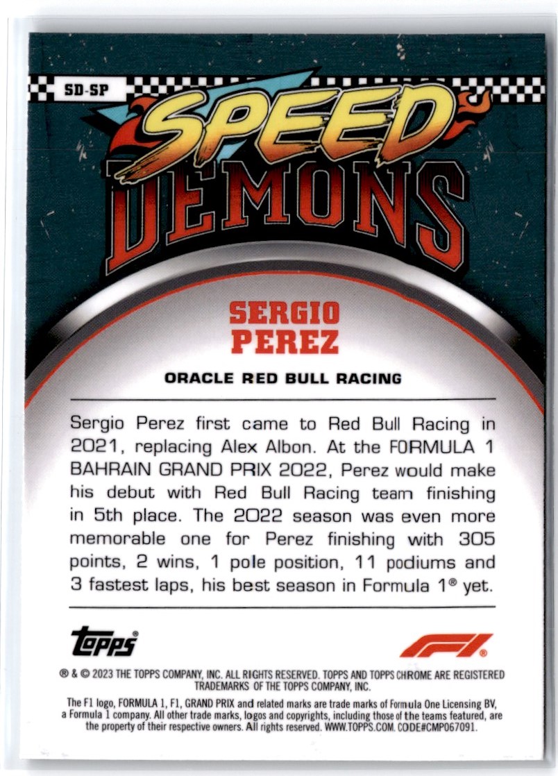 2023-24 Topps Formula One Chrome Speed Demons Sergio Perez Red Bull #SD-SP