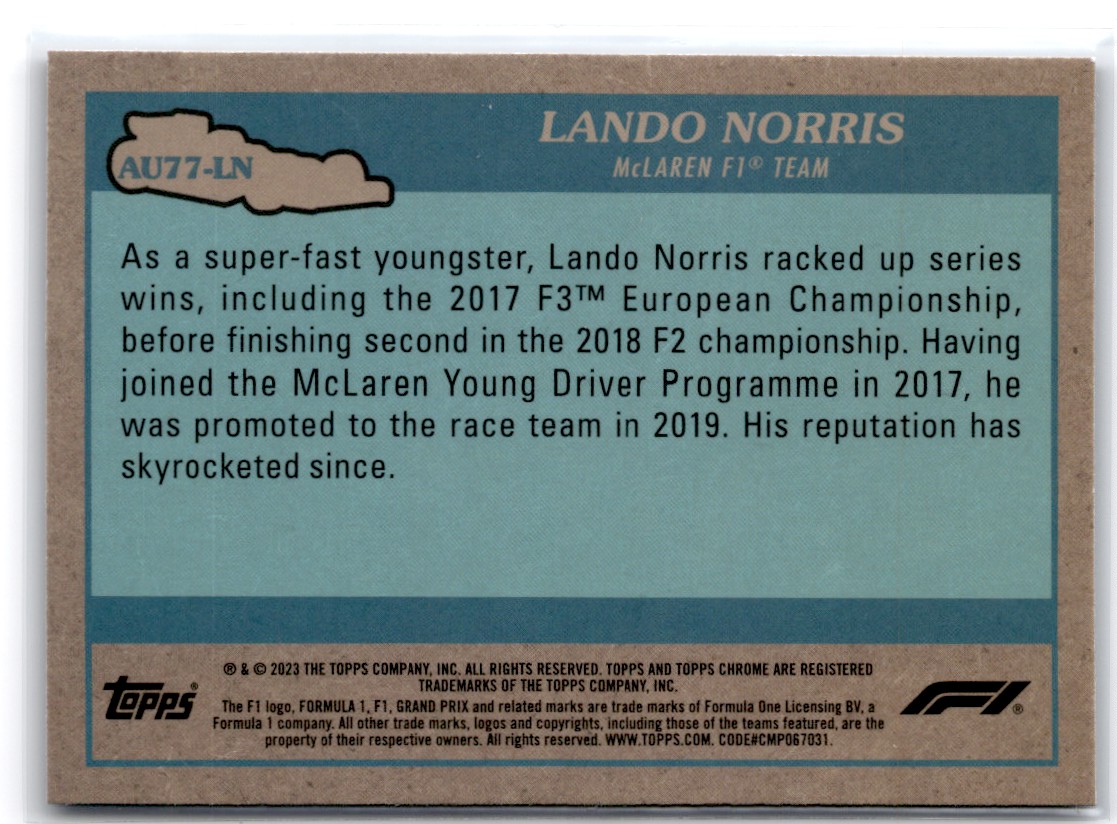 2023-24 Topps Formula One Chrome Mclaren F1 Lando Norris McLaren #AU77-LN