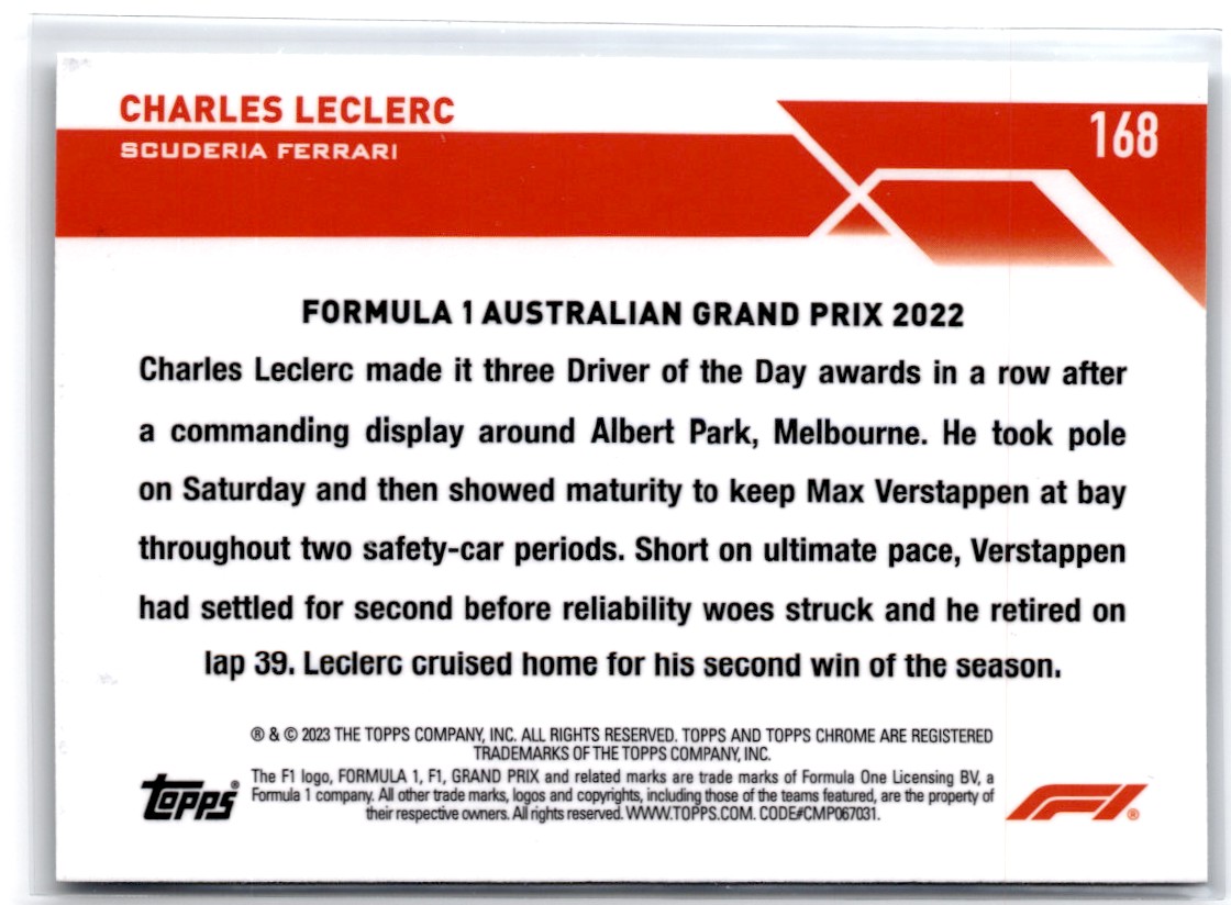 2023-24 Topps Chrome Formula 1 Charles LeClerc Scuderia Ferrari #168
