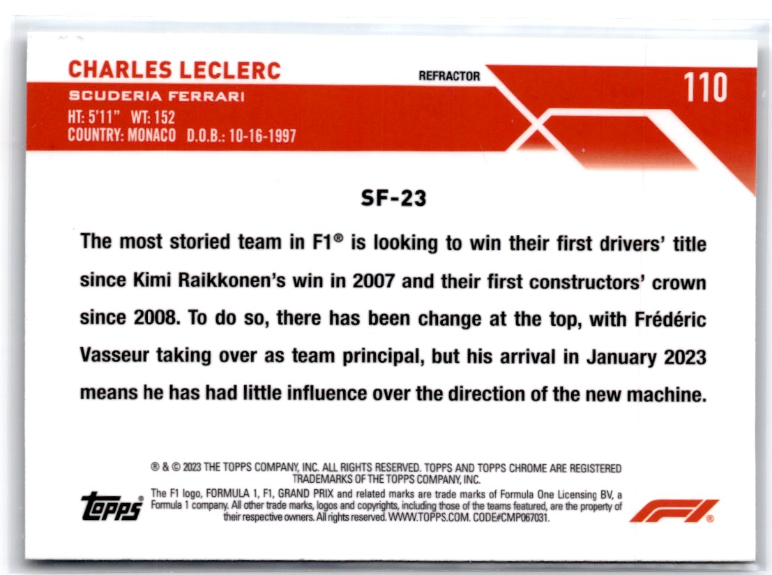 2023-24 Topps Chrome Formula 1 Refractor Charles LeClerc Scuderia Ferrari #110