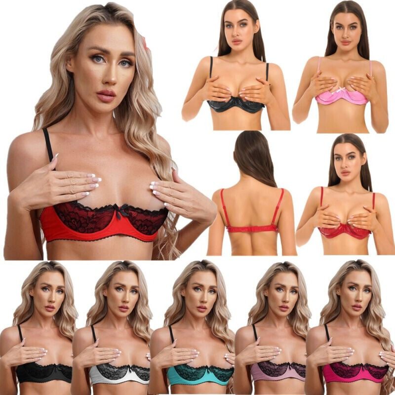 Half cup and underwire provides support to push up your big boobs, shape great cleavage, making you superbly sexy and charming.