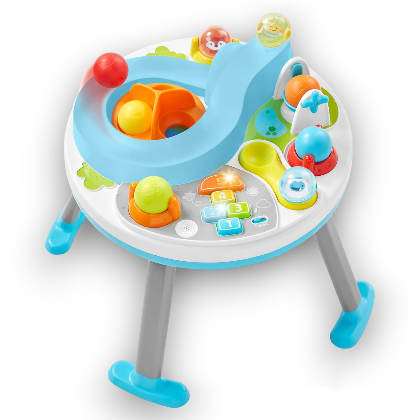 Das Skip Hop Let's Roll Explore and More Aktivitätscenter bietet nicht nur stundenlangen Spielspaß, sondern fördert auch die Entwicklung wichtiger Fähigkeiten bei Kleinkindern auf spielerische Weise.