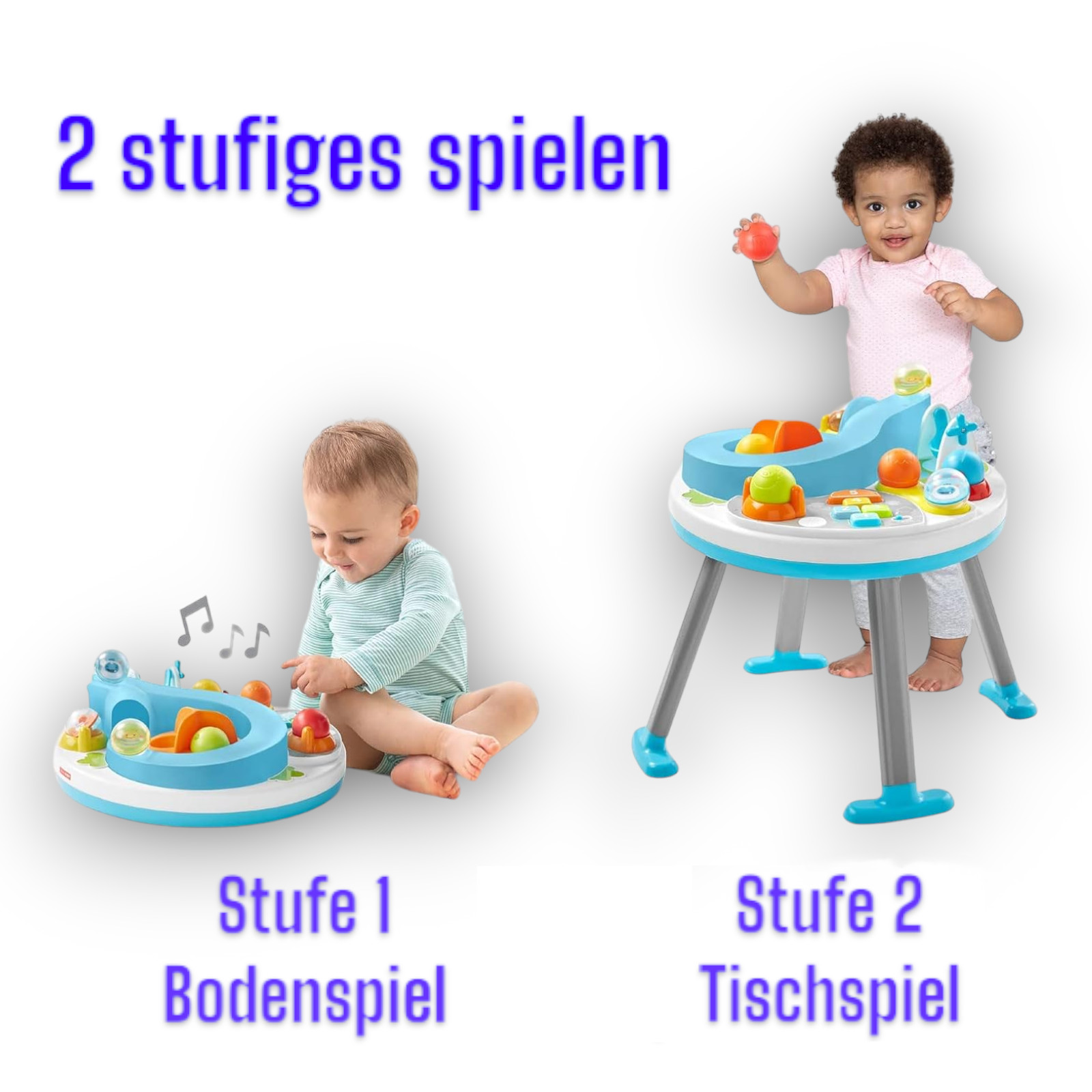 Sicherheitshinweise: Das Aktivitätscenter ist für Kinder im Alter von 6 Monaten bis 3 Jahren geeignet. Es sollte jedoch nur von Kindern verwendet werden, die sich ohne Hilfe aufsetzen können (im Bodenspielmodus) oder ohne Hilfe aufstehen können (im Aktivitätsspielmodus). Es ist wichtig, das Kind niemals unbeaufsichtigt zu lassen und immer im Blick zu behalten, wenn das Produkt in Gebrauch ist.