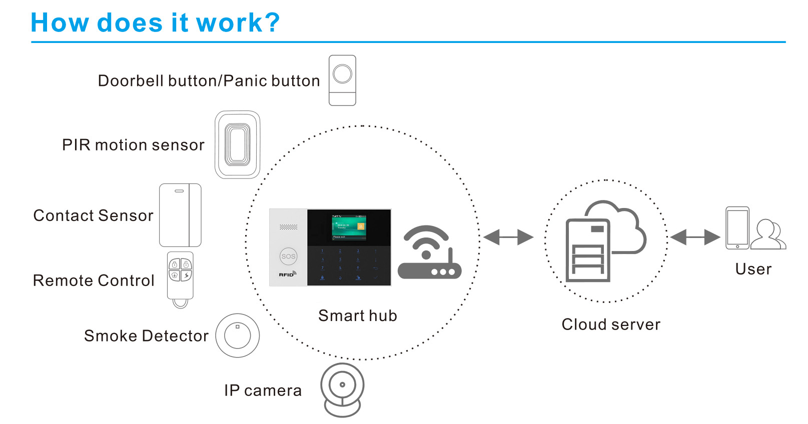 A: Compatible with Alexa and Google home: This alarm sysetm works with Amazon Alexa and Google Home for voice control ( Alexa and google home devices not included ). Just ask app Alexa on your phone to Arm / Disarm/ the whole system in a specific instruction like "Alexa, please arm the alarm system". Remote control your Alarm system anywhere in the world with your smart cell phone, no need repeated operation!