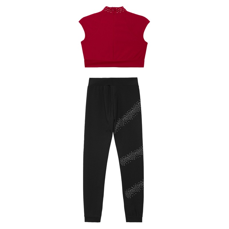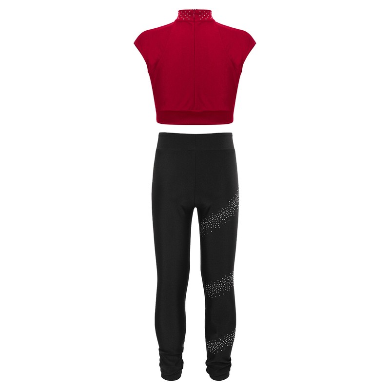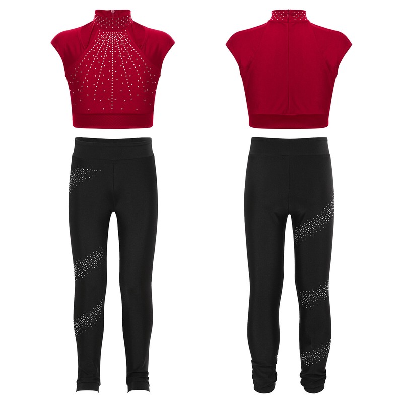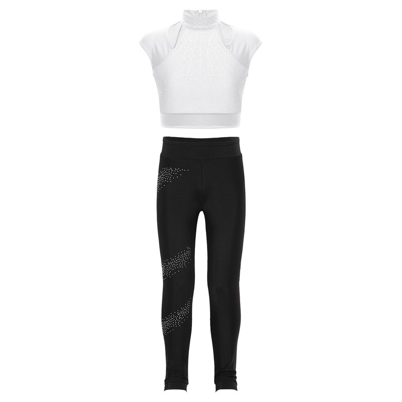 Girl’s top is decorated with shiny rhinestones to brighten up any performance and create an eye-catching effect.