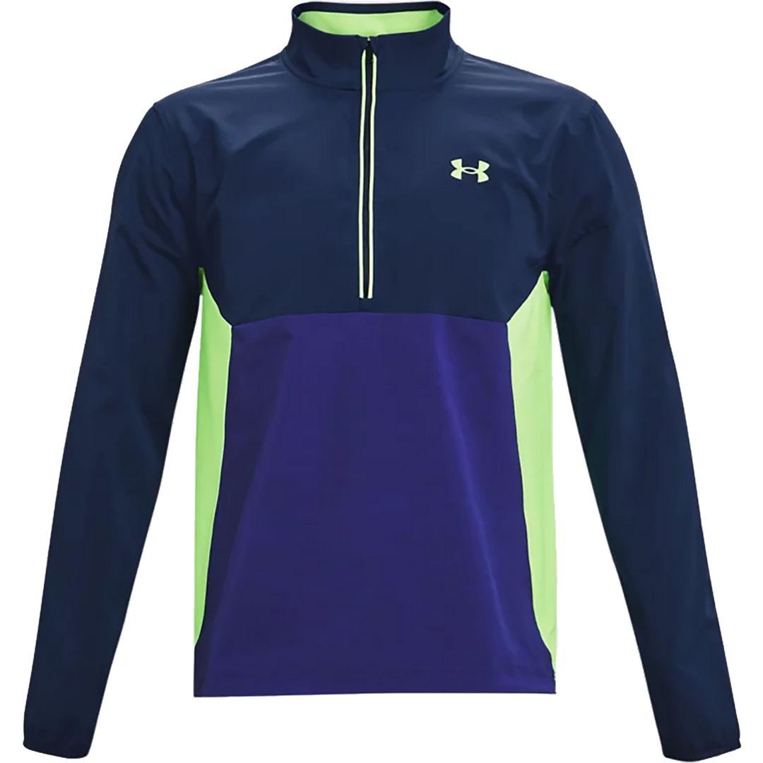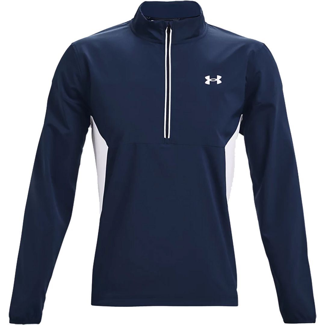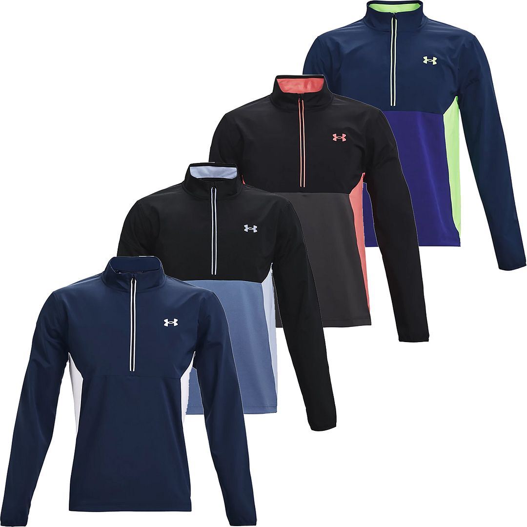 Under Armour Golf UA Storm Windstrike 1/2 Zip Windproof Golf Pullover is for the serious golfers who stick it out and play through anything. It's wind- and water-resistant, so you can ignore the elements and stay locked in. This jacket includes Under Armour storm technology along with a windproof construction to give you a pullover that keeps you warm and dry. Woven stretch fabric design gives it the perfect fit and feel along with a quiet sound when swinging. A great top for all year round.