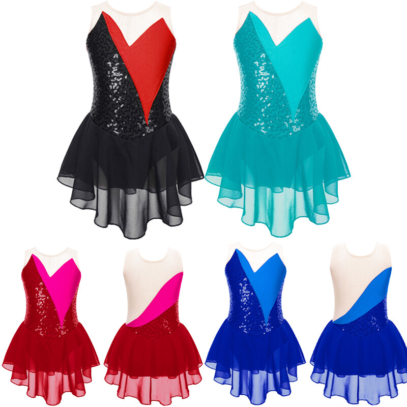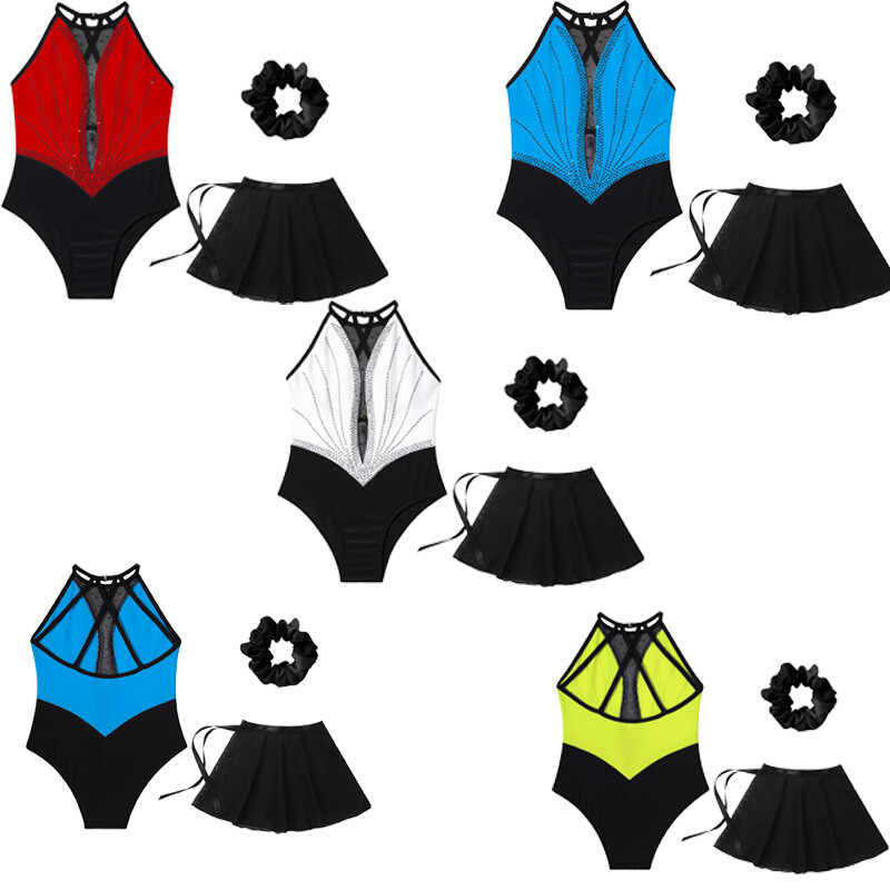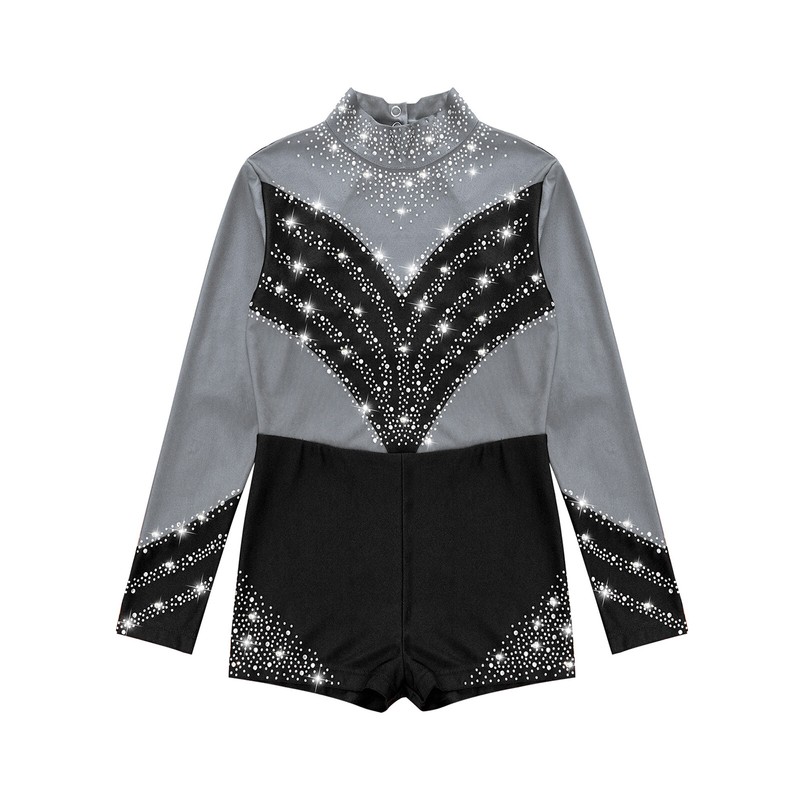 Kids Girls Stylish Clothing Shiny Diamond Decorated Contrast Color Gymnastic Dance Jumpsuit.